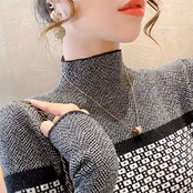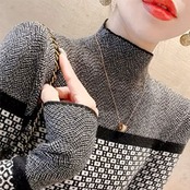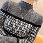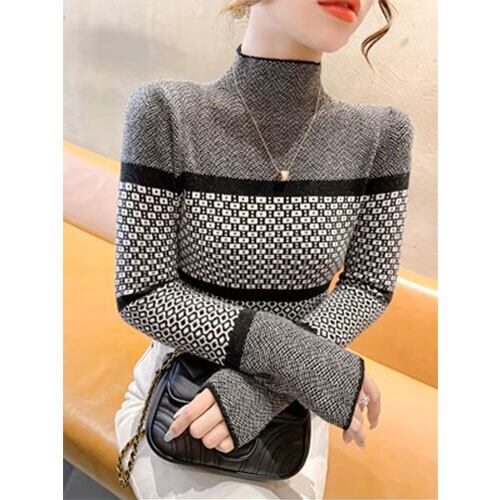 【送料無料】レディース エレガント ハイネック 長袖 セーター - 厚手 暖かい 冬用セーター ブラック&幾何学模様、ストレッチ プルオーバー 秋/冬向け、カジュアル シック レイヤリング 必需品、セーター、シーズナルファッション、スタイリッシュ ニットウェア、ソフトな質感、ファッション好きに, セーターレディース, レディーストップス, レディースセーター, レディース セーター, サマーセーター, ニットセーター K02953 | monohouse