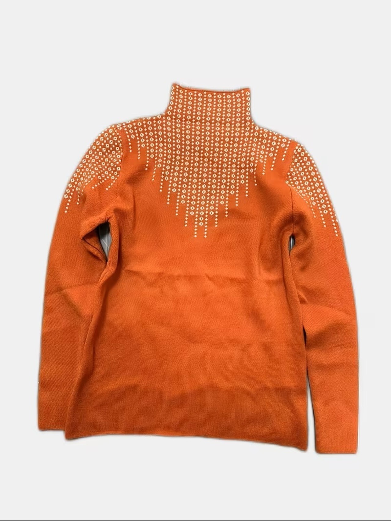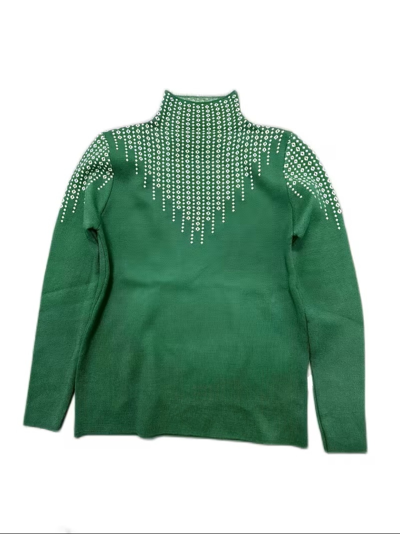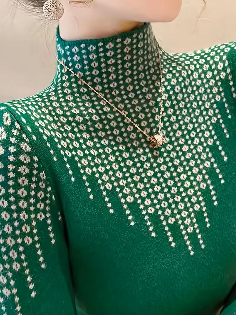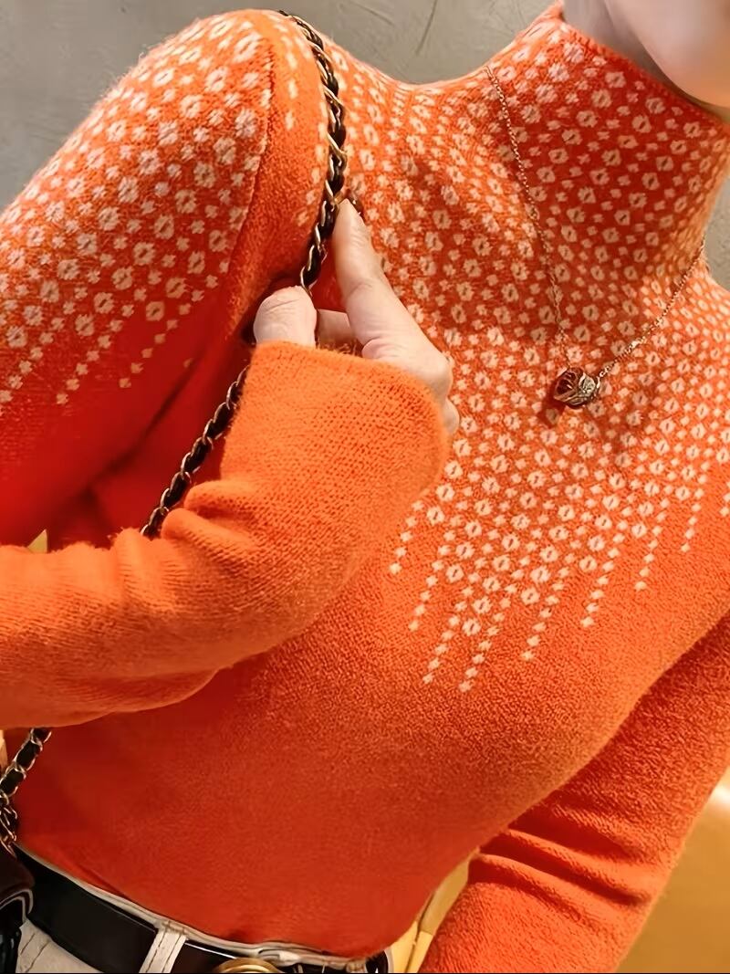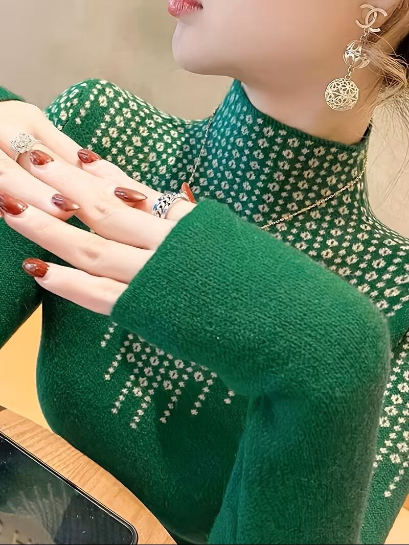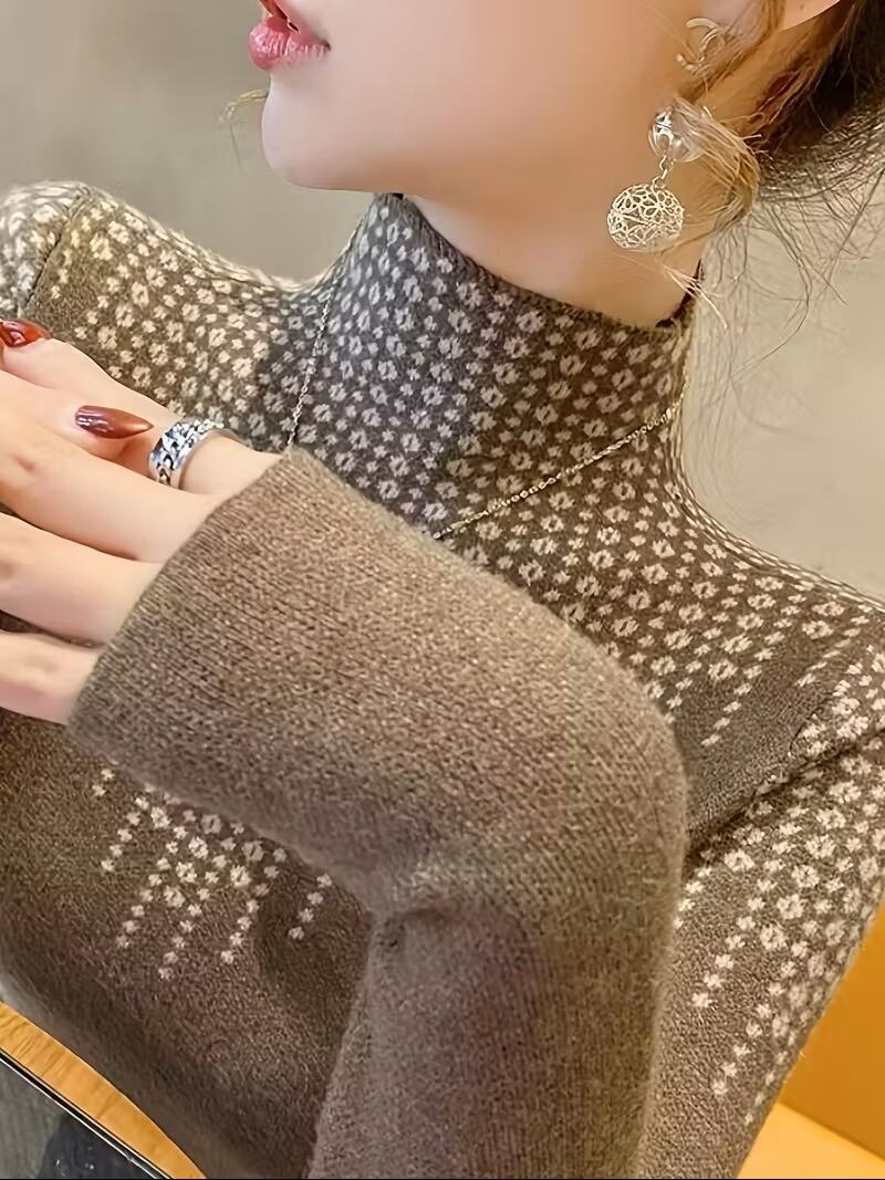 エレガントな雰囲気を演出する、レディースのジオパターンタートルネックプルオーバーセーターです。心地よい伸縮性のある素材を使用しており、身体にフィットしながらも動きやすい設計。美しいジオメトリックデザインが魅力的で、シンプルなコーディネートに加えるだけで洗練された印象を与えます。長袖仕様で、寒い季節でも暖かく、さまざまなスタイルに合わせやすい万能アイテムです。