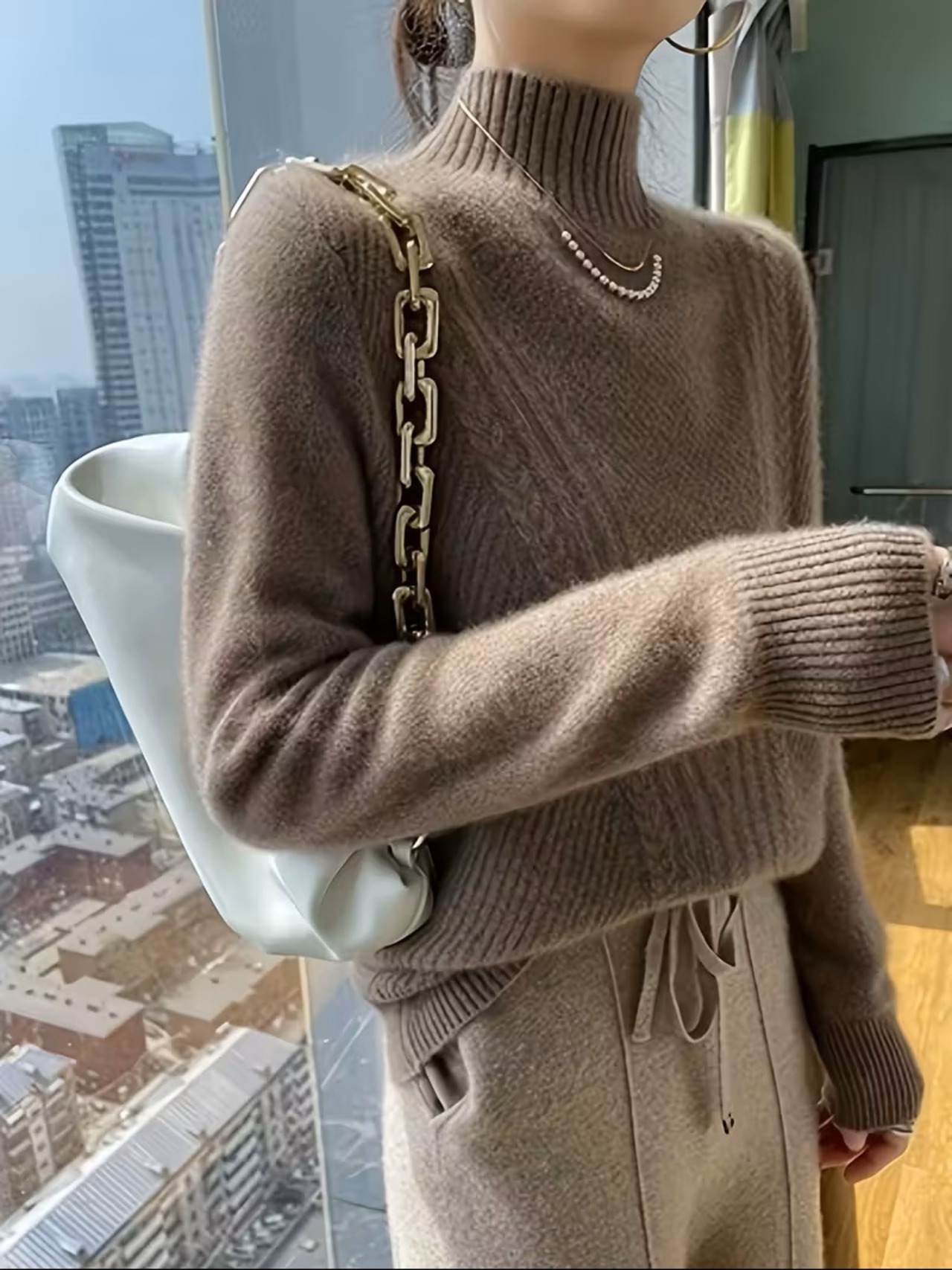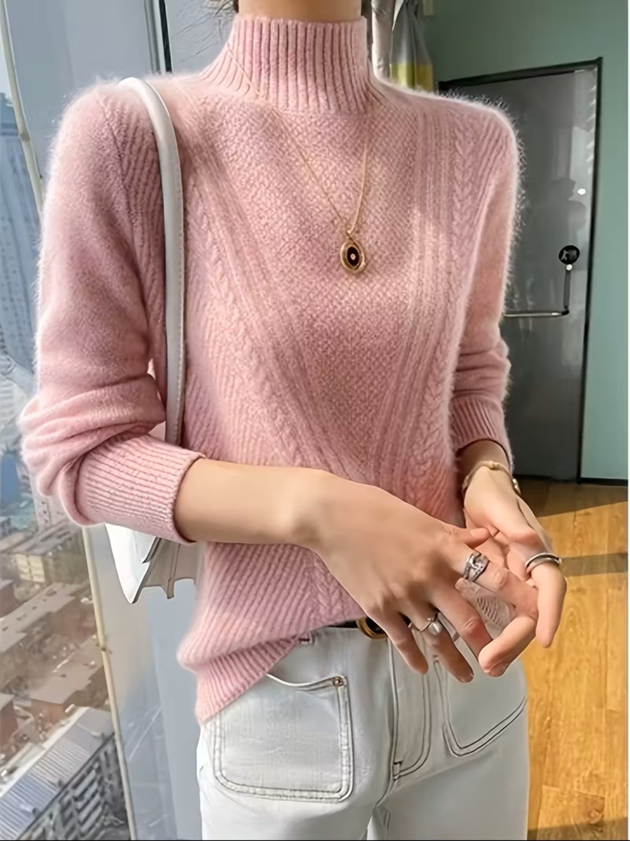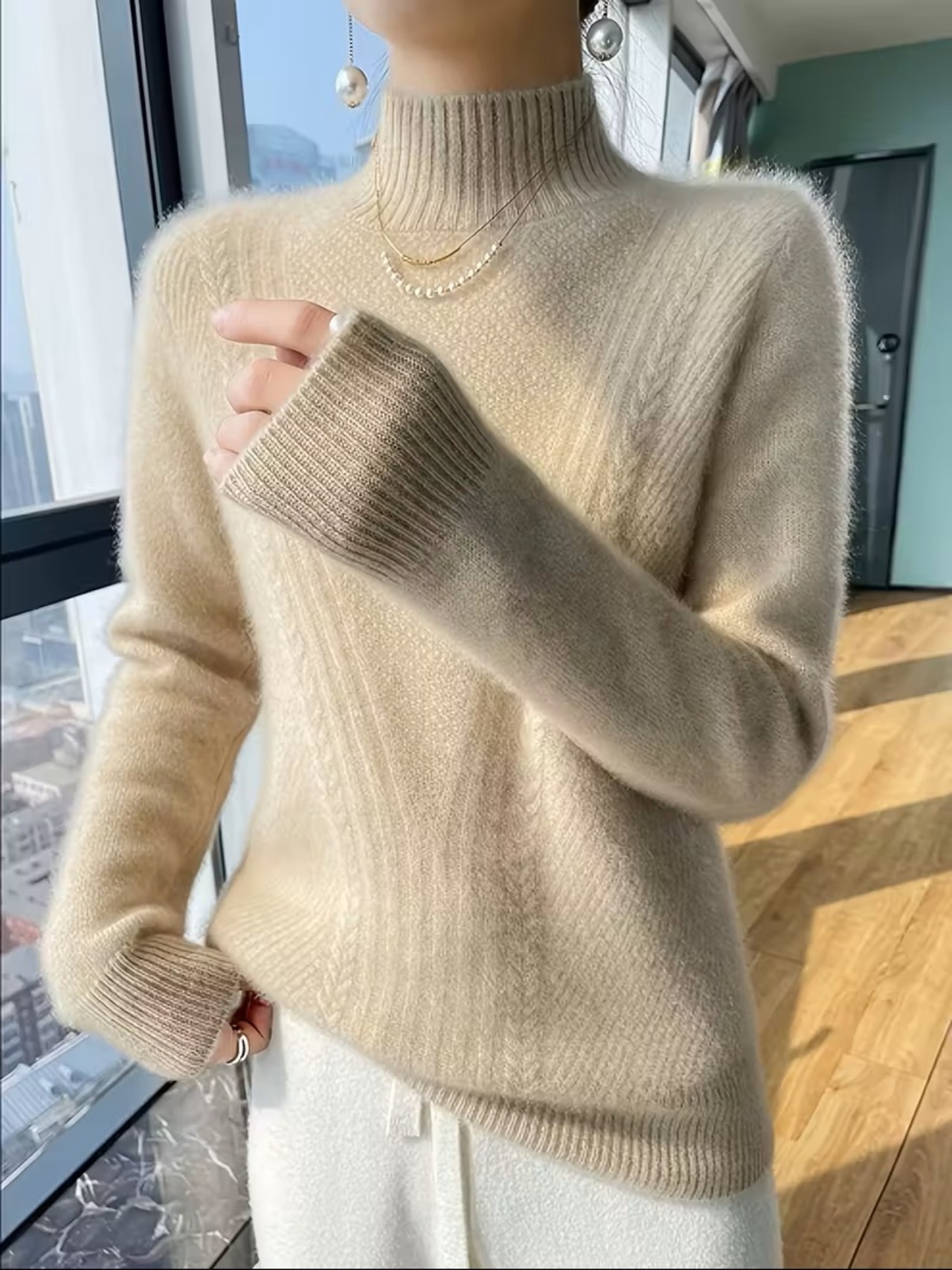洗練されたエレガンスを纏った、レディース ハーフハイネックセーターの登場です。柔らかな素材を使用したこの長袖セーターは、肌触りが良く、一日中快適に着用できる優れたフィット感を実現しています。シックなデザインは、オフィスからパーティーまで幅広いシーンにマッチし、普段使いやフォーマルなイベントでも活躍すること間違いありません。心地よい秋冬のトップスとして、どんなスタイルにも取り入れやすいアイテムです。