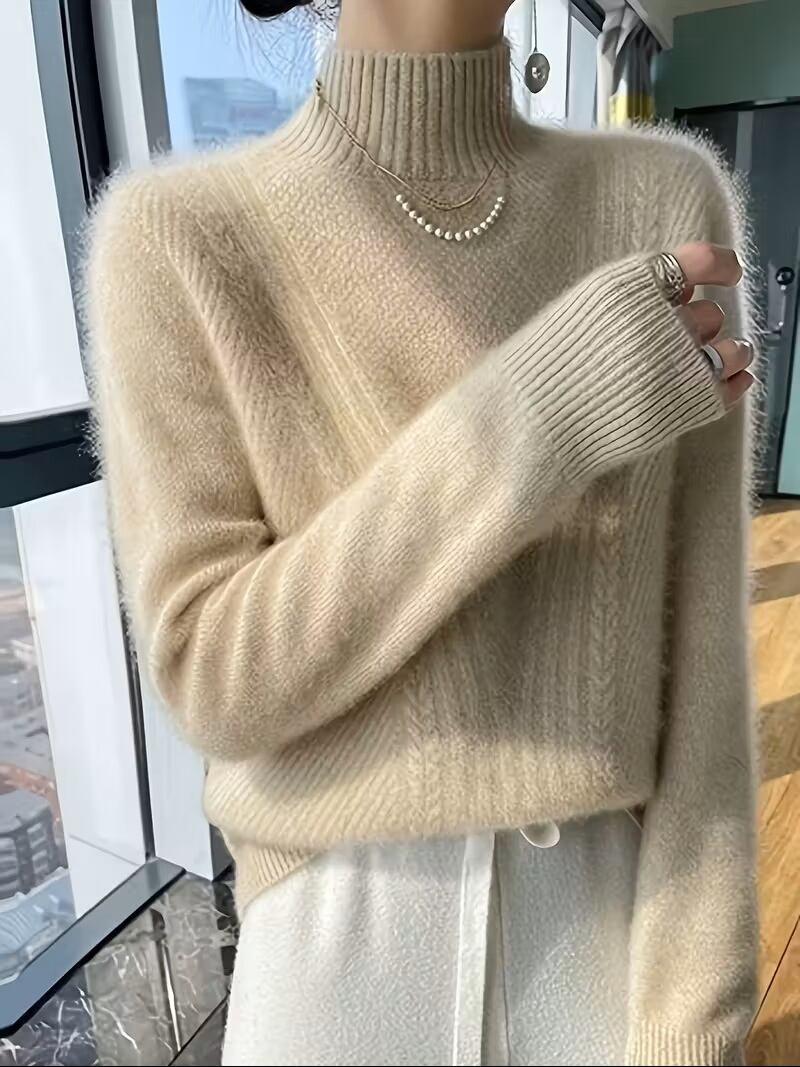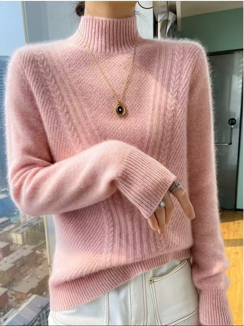 【送料無料】【レディース】エレガントなハーフハイネックセーター - ソフトな長袖冬用セーター、シックなオフィスからパーティーまでの衣装、普段使いやフォーマルなイベントに最適な心地よい秋/冬トップス K02963 | monohouse