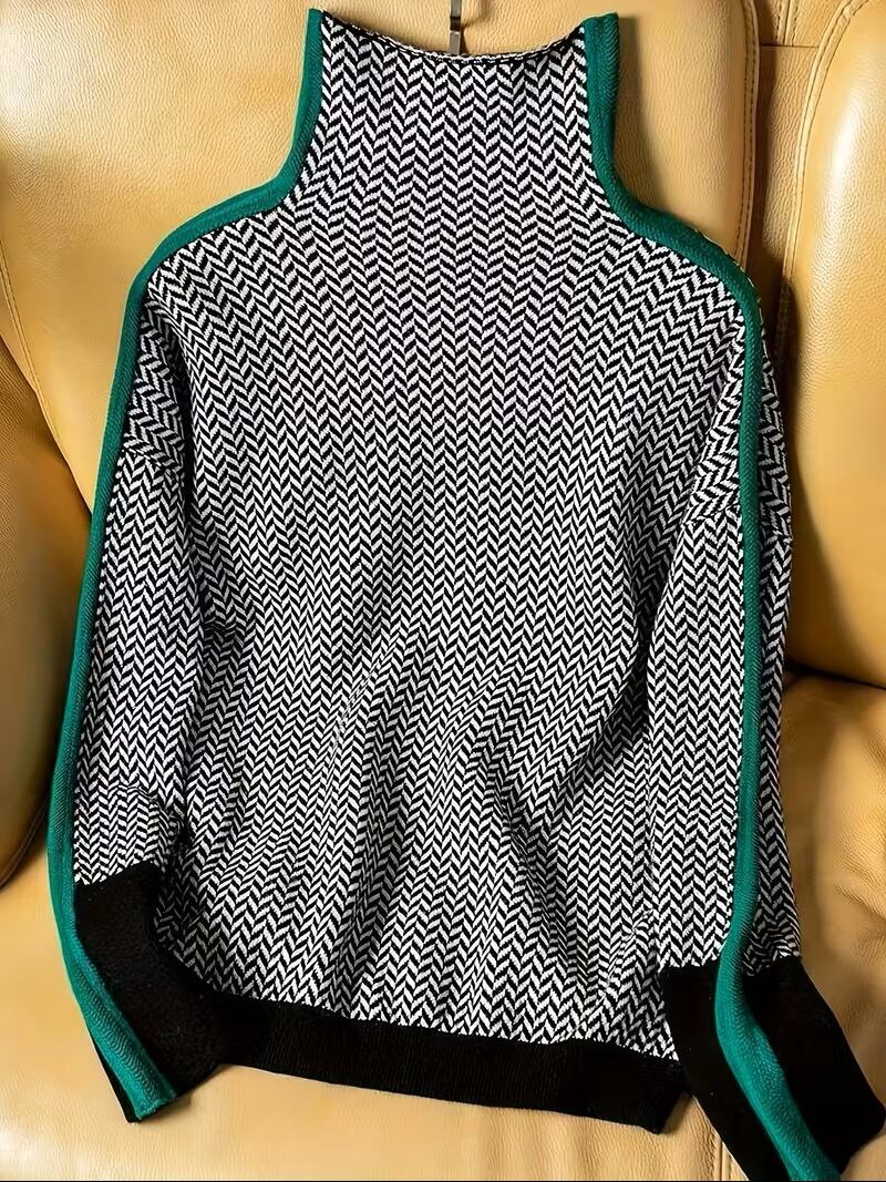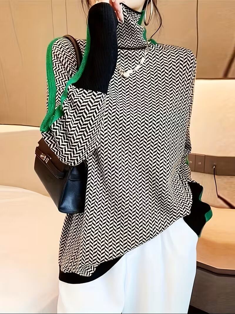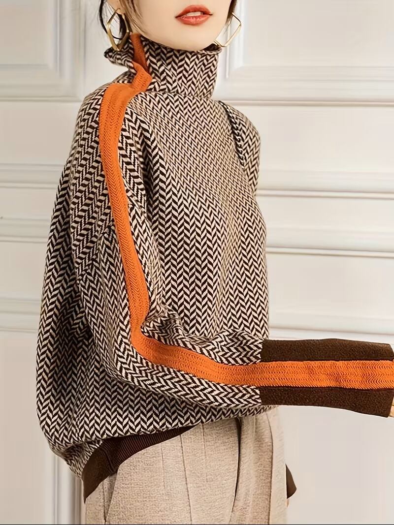 【送料無料】レディース エレガント ハイネック セーター - 冬用 暖かい カラーブロック セーター 秋/冬に最適 Hライン シルエット & スリーブ プルオーバー 手洗い可能 コージー セーター 特別な日やイベントに K02965 | monohouse