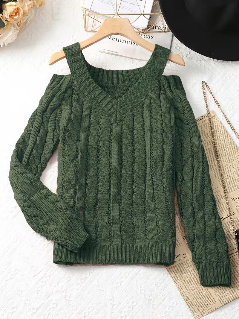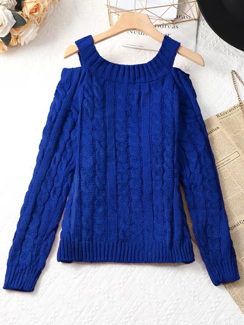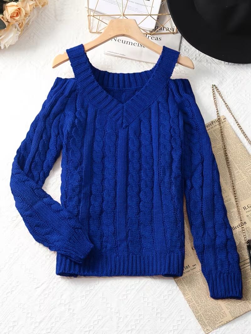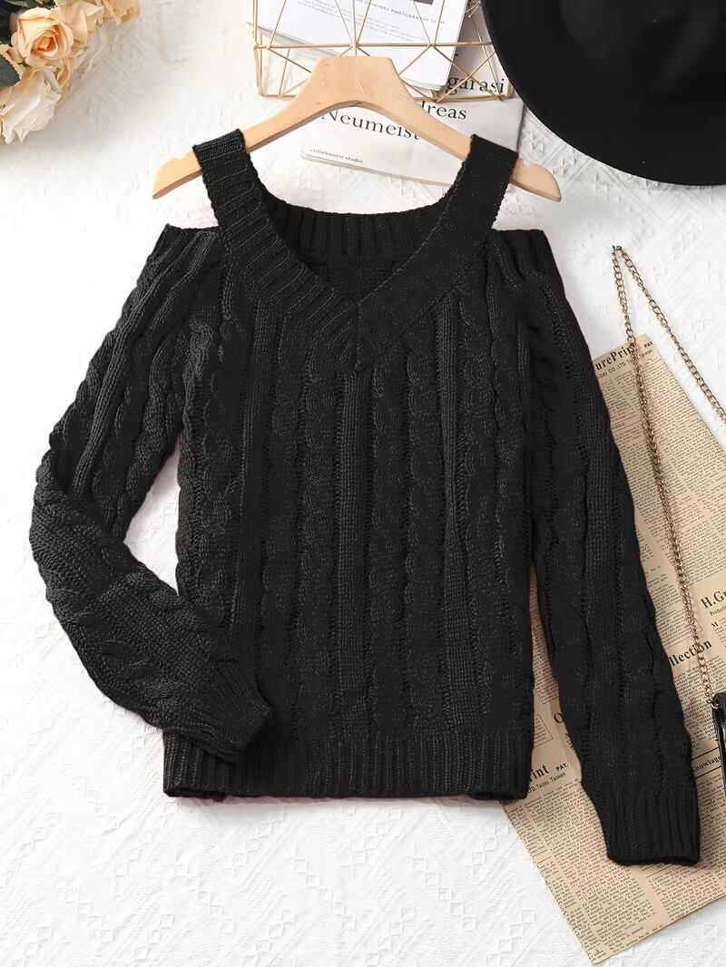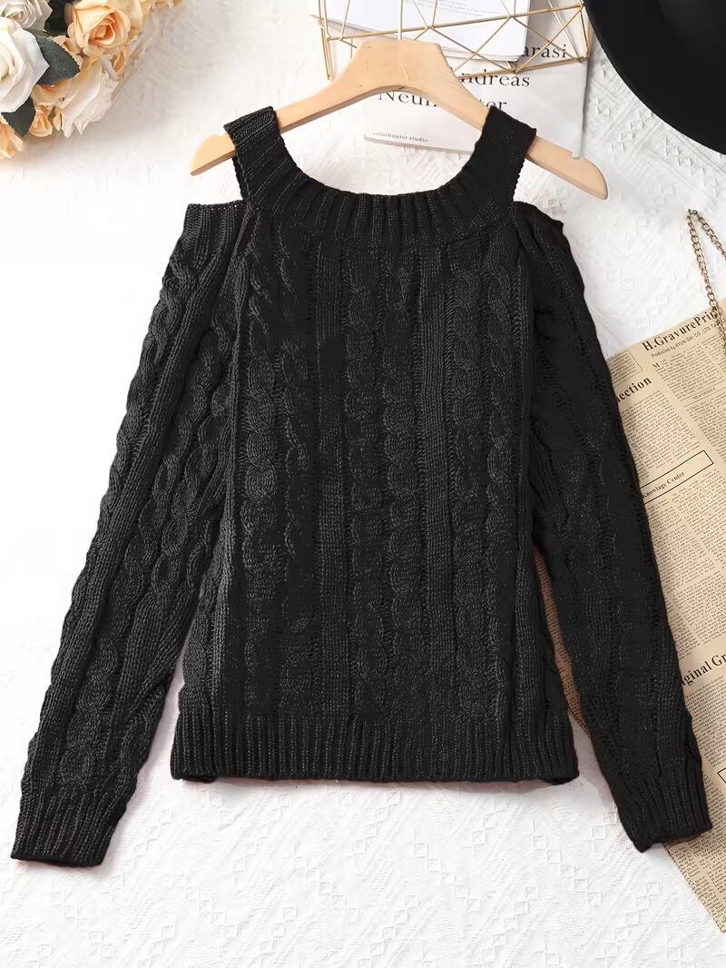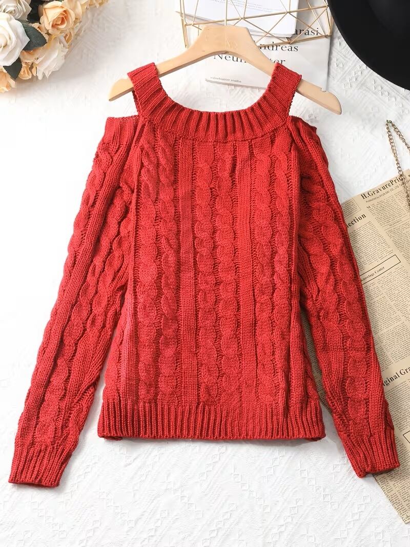【送料無料】女性用オフショルダースウェーター - 長袖のシックなワンショルダースウェーター、秋/冬向けエレガントなスウェーター、フォーマル&日常着 - 女性用セーターキュート、カジュアルウィンターウェア、Y2Kファッション、テクスチャードニットウェア K02967 | monohouse