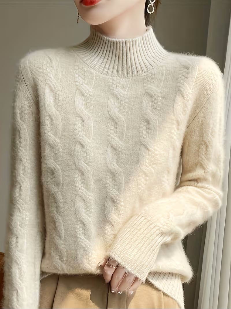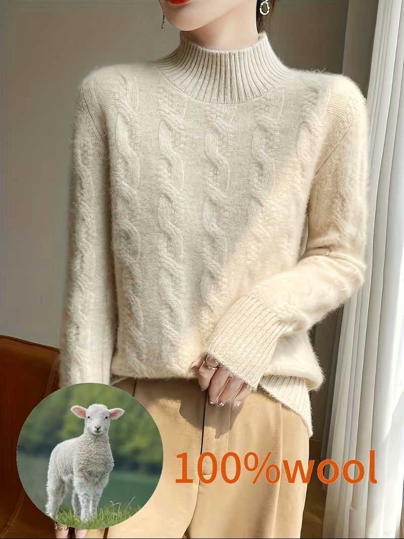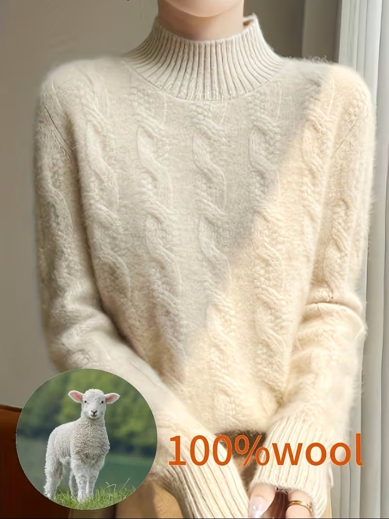 【送料無料】レディース 100%ウール 冬用セーター - 厚手で暖かいラウンドネック長袖ブラウス、無地カラーのエレガントな秋冬用セーター、手洗い可能な快適なウールセーター(在庫あり) K02977 | monohouse