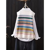 女性向けの新しいノースリーブベストです。シンプルでありながら洗練されたストライプデザインが特徴で、カジュアルからきれいめまで幅広いコーディネートに合わせやすいアイテムです。軽やかな着心地で、季節の変わり目やレイヤードスタイルに最適。シャツやTシャツ、ブラウスの上に重ねるだけで、こなれ感のあるスタイルが完成します。デイリー使いはもちろん、オフィスやお出かけにも活躍する万能ベストです。