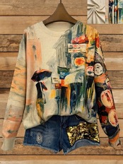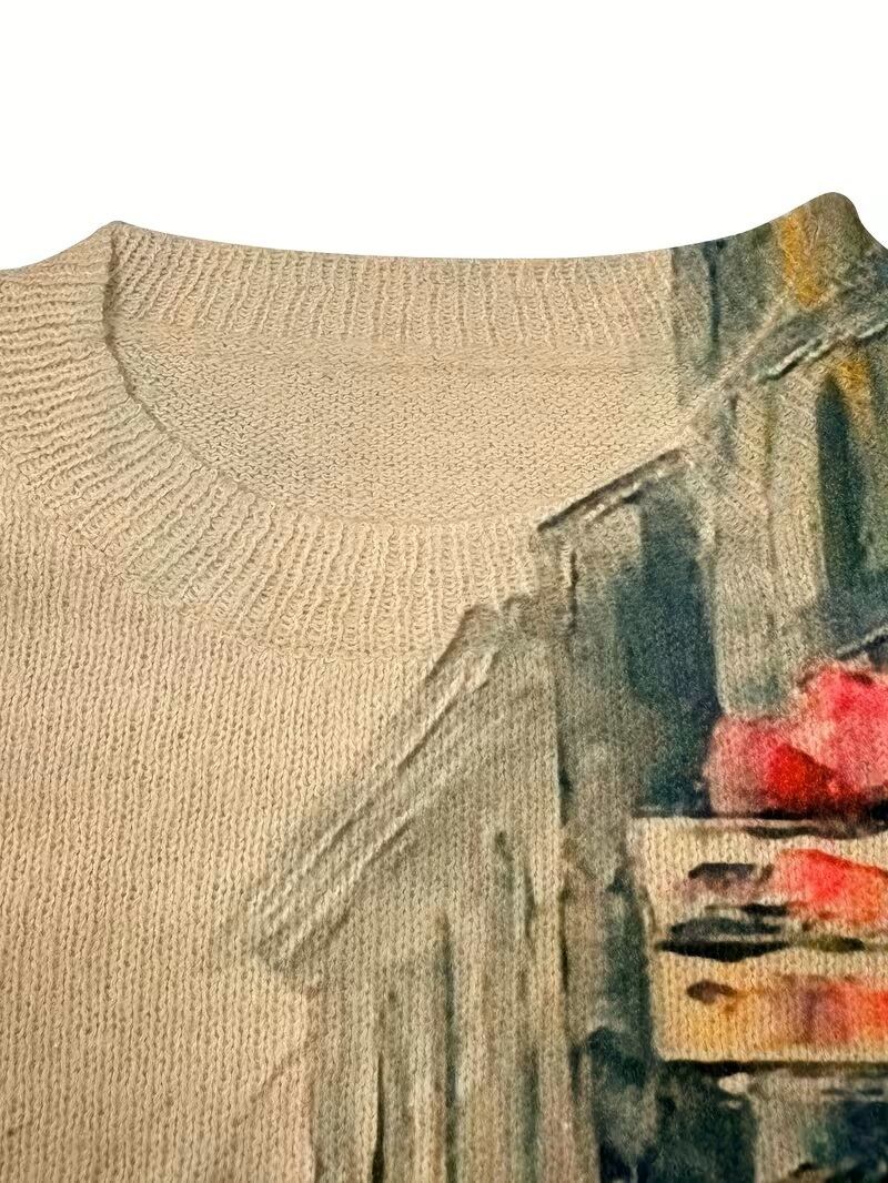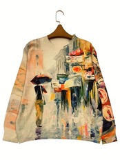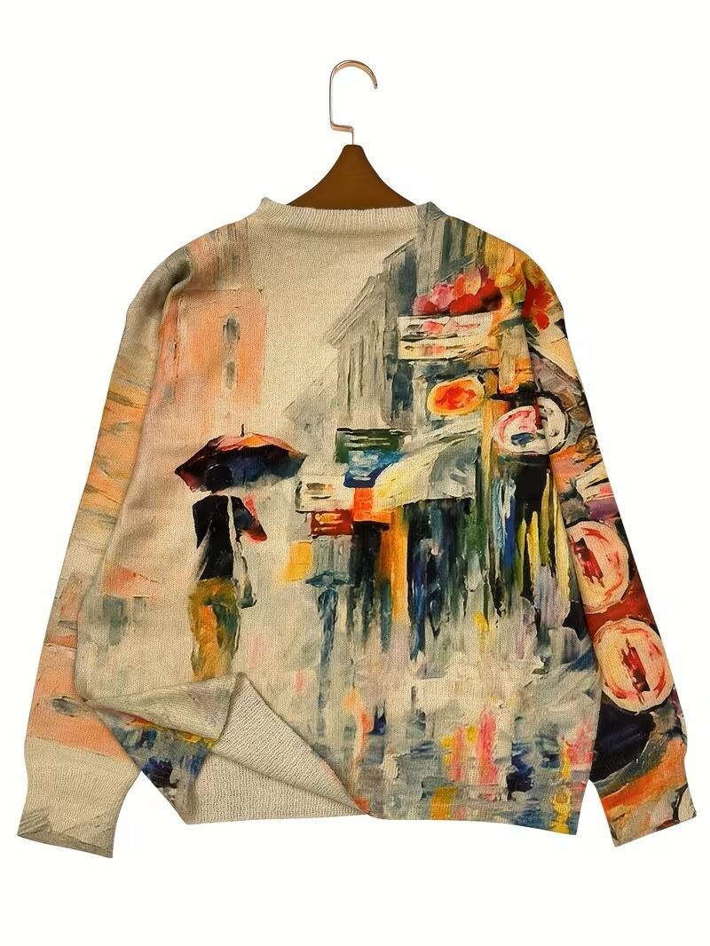 【送料無料】レディース 軽量セーター - オイルペインティング抽象デザイン、ベージュ/ブルー/レッド/ブラック/ホワイト/グレー/オレンジ、日常&フォーマルウェア用 - ソフトプルオーバーセーター、かわいいセーター、多機能服、芸術的なデザイン、快適フィット、トレンディな女性向け、カジュアルウェア、アーティスティックプリント、通気性素材、ファッション愛好家向け K02989 | monohouse