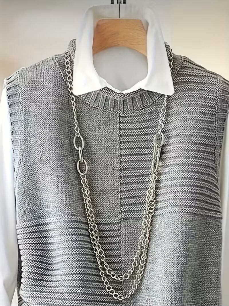 2025年版の富を引き寄せるレトロベストが新入荷!カラー付きのノースリーブセーターベストは、グレー、ホワイト、ブラック、ベージュ、ネイビーの5色展開で、様々なスタイルに合わせやすく、レイヤードウィンタージャケットやブレザー、ドレスとの相性も抜群です。簡単にプルオーバーできるデザインは、普段使いから特別な日まで幅広く対応し、心地よい着心地を提供します。さりげなく華やかさを演出する一着です!