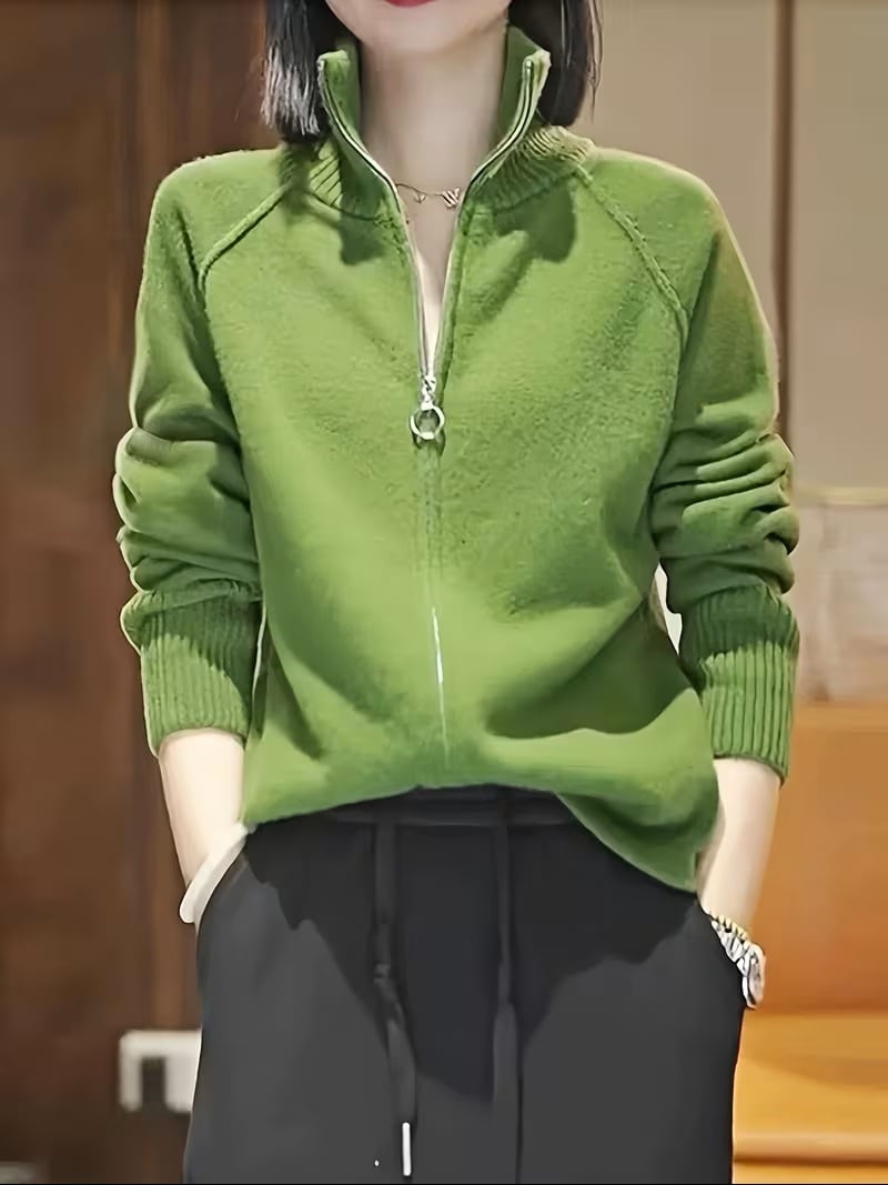 冬の休日を楽しむために最適なトレンドアイテム、ルーズグリーンのジップアップカーディガンが登場!豊かな緑色が季節感を演出し、シンプルなファッションにアクセントを加えます。ジッパータイプのデザインは、着脱もスムーズで、デイリーコーディネートに最適。柔らかな素材感が心地よく、さらっと羽織るだけで、暖かさとスタイルを両立させます。このカーディガンは、冬のリラックスタイムに欠かせないアイテムです!