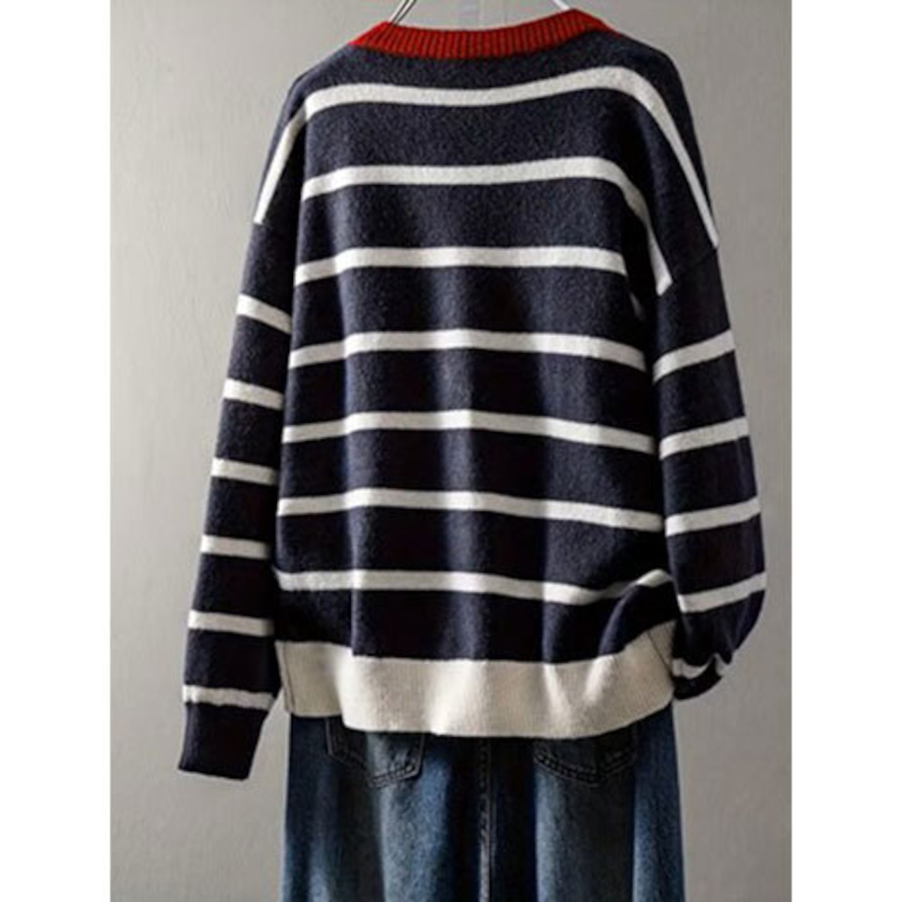 【送料無料】【Rachel Crab】方向性ボタンアップ ストライプ セーター カーディガン、カジュアル かわいい ハート柄 カーディガン、トレンディなレディース服。 K03015 | monohouse
