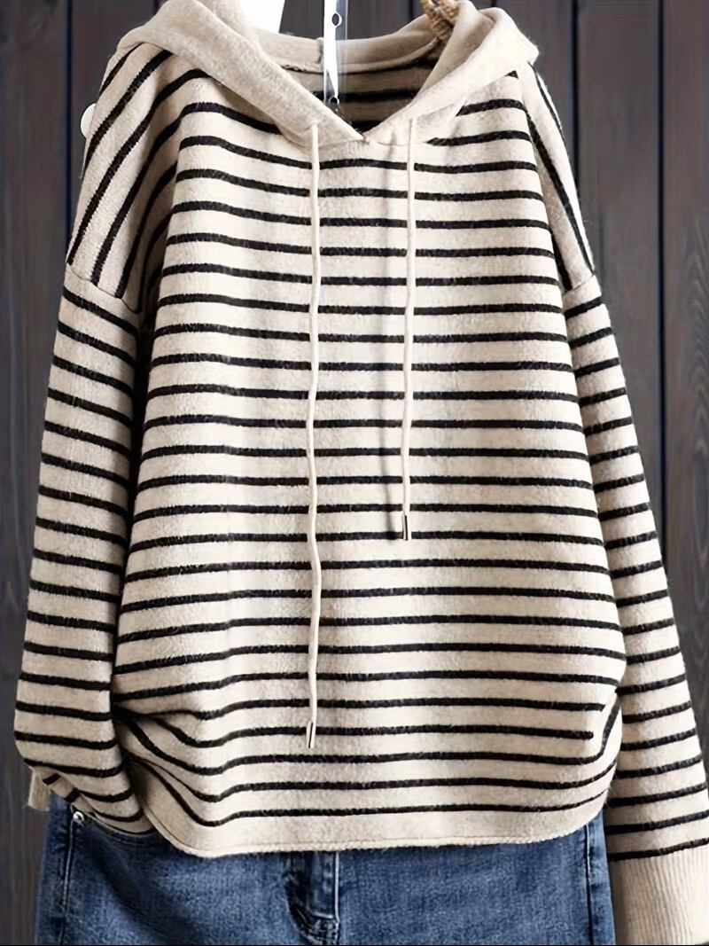【送料無料】女性のエレガントなストライプ付きフーディー - ドローストリング付き、カジュアルなニットパルオーバー - 秋冬に最適、秋冬の衣類 | スタイリッシュなフーディー | ニット構造、セーターフーディ K03020 | monohouse
