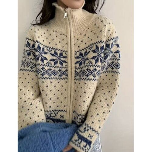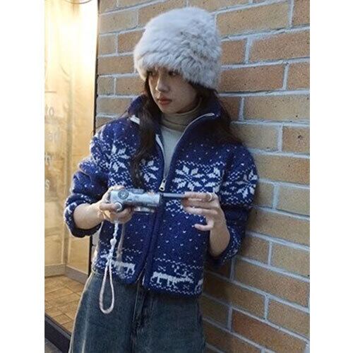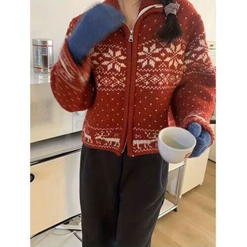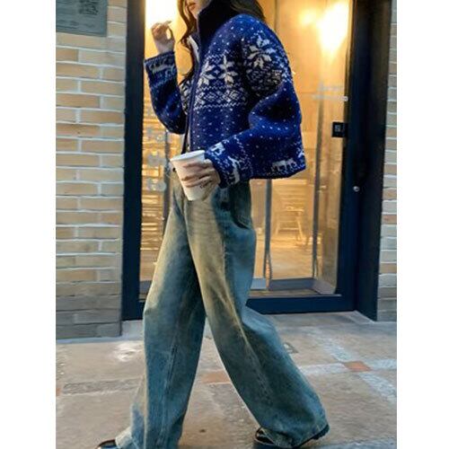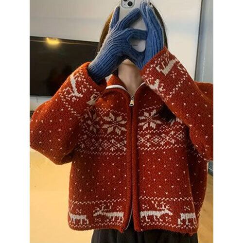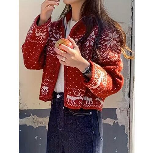 雪の結晶をモチーフにした刺繍デザインが魅力のクリスマス風ジャケットです。柔らかなアクリル混紡素材を使用し、軽やかな着心地とあたたかさを両立。ジップアップ仕様で着脱しやすく、デイリーにもイベントにも使いやすい一着です。和風テイストを感じさせる落ち着いた色合いと、冬らしいモチーフが季節感を演出。カジュアルコーデに合わせやすく、スカートやパンツとも相性抜群です。