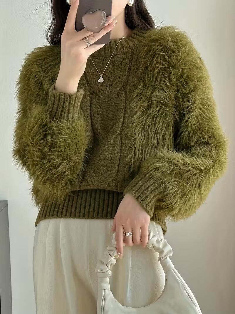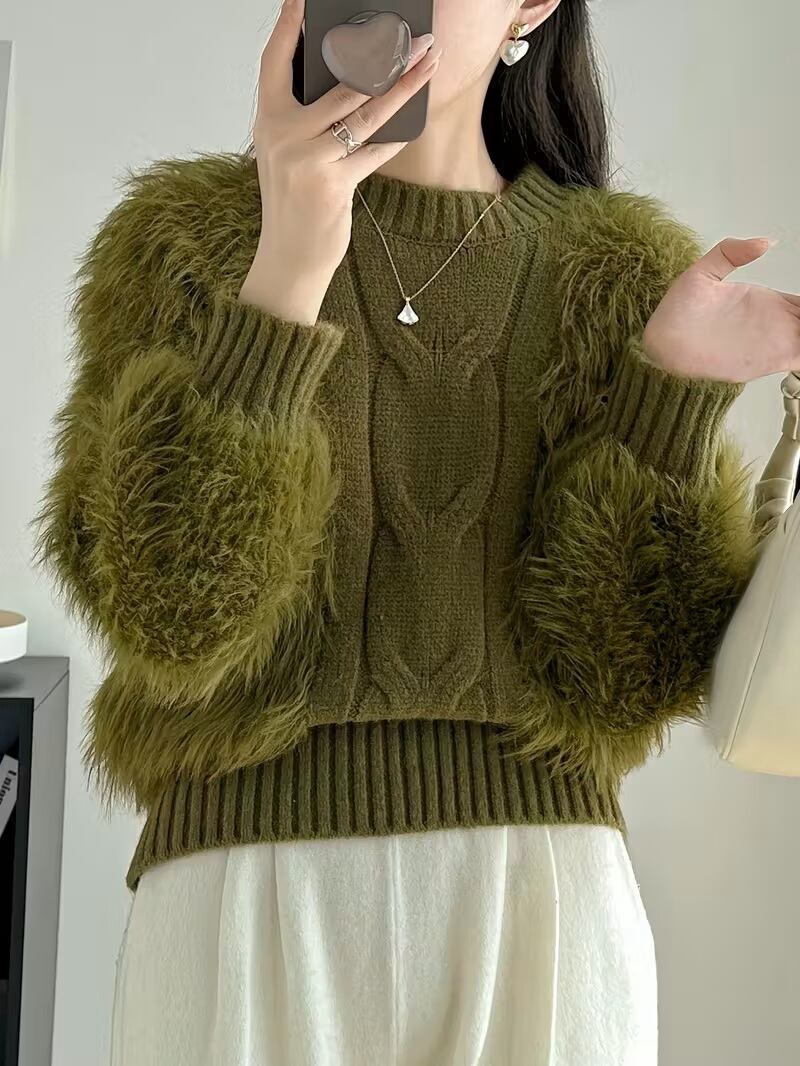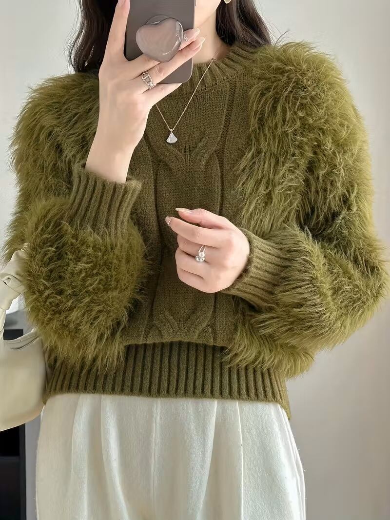 【送料無料】レディース 冬用 カジュアル ラウンドネック フワフワ ロングスリーブ セーター - ソフト オリーブグリーン リブ編み テクスチャー 洗濯機対応 コージープルオーバー, ウィンターファッション, テクスチャードニットウェア, 寒さ対策 衣料品, スタイリッシュトップ, 快適素材, おしゃれな女性向け K03028 | monohouse