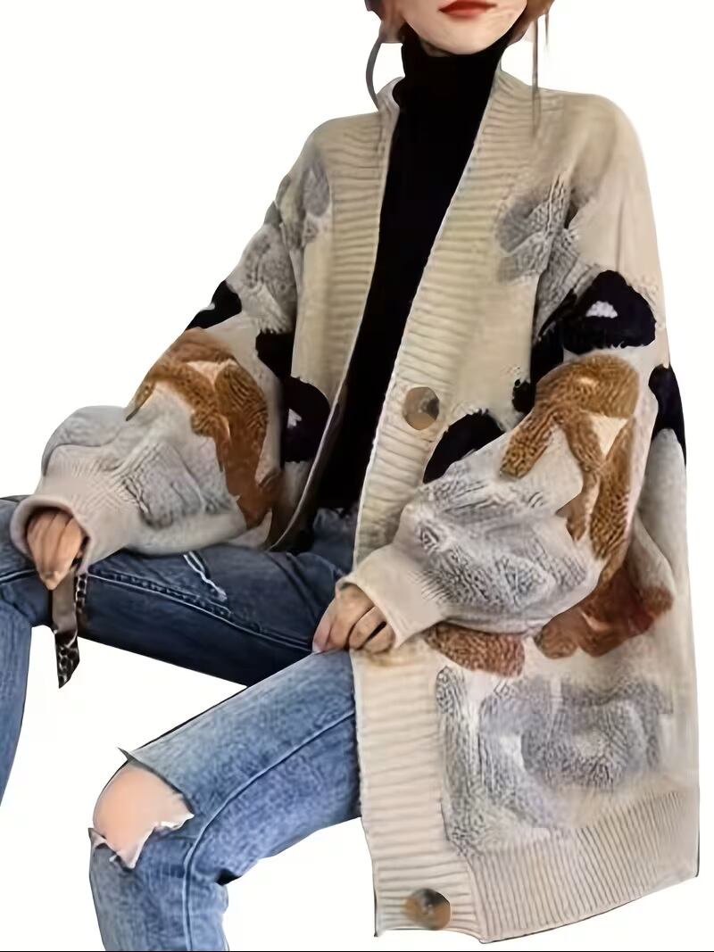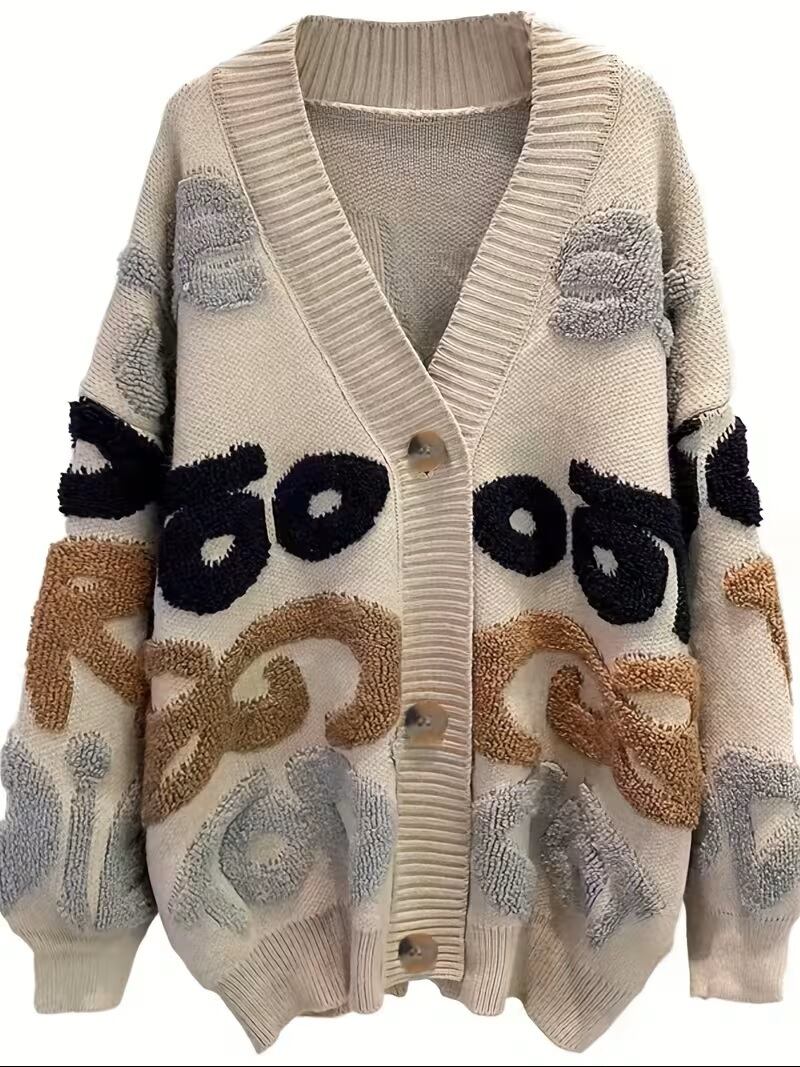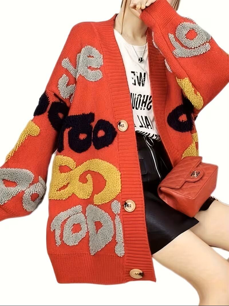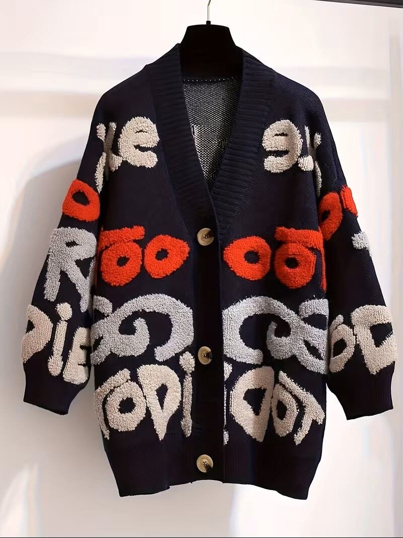 秋冬に最適なカジュアルな長袖カーディガン、レターパターンボタンアップカーディガンが新登場!トレンドを意識したデザインで、ゆったりとしたフィット感が特徴です。ボタンアップのデザインが魅力的で、デイリースタイルからお出かけまで、幅広いシーンで活躍する一着です。柔らかな素材感が心地よい着心地を提供し、秋冬の寒さから守ります。シンプルなコーディネートに合わせることで、スタイリッシュな印象を演出します。