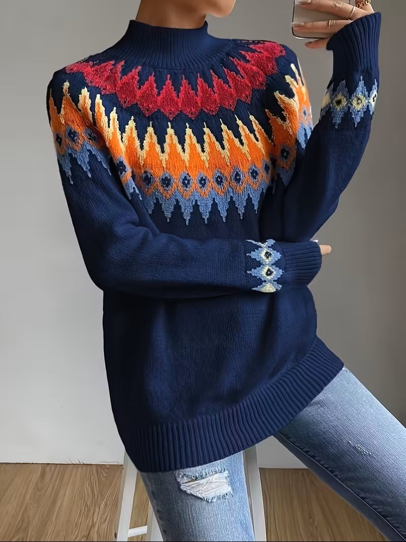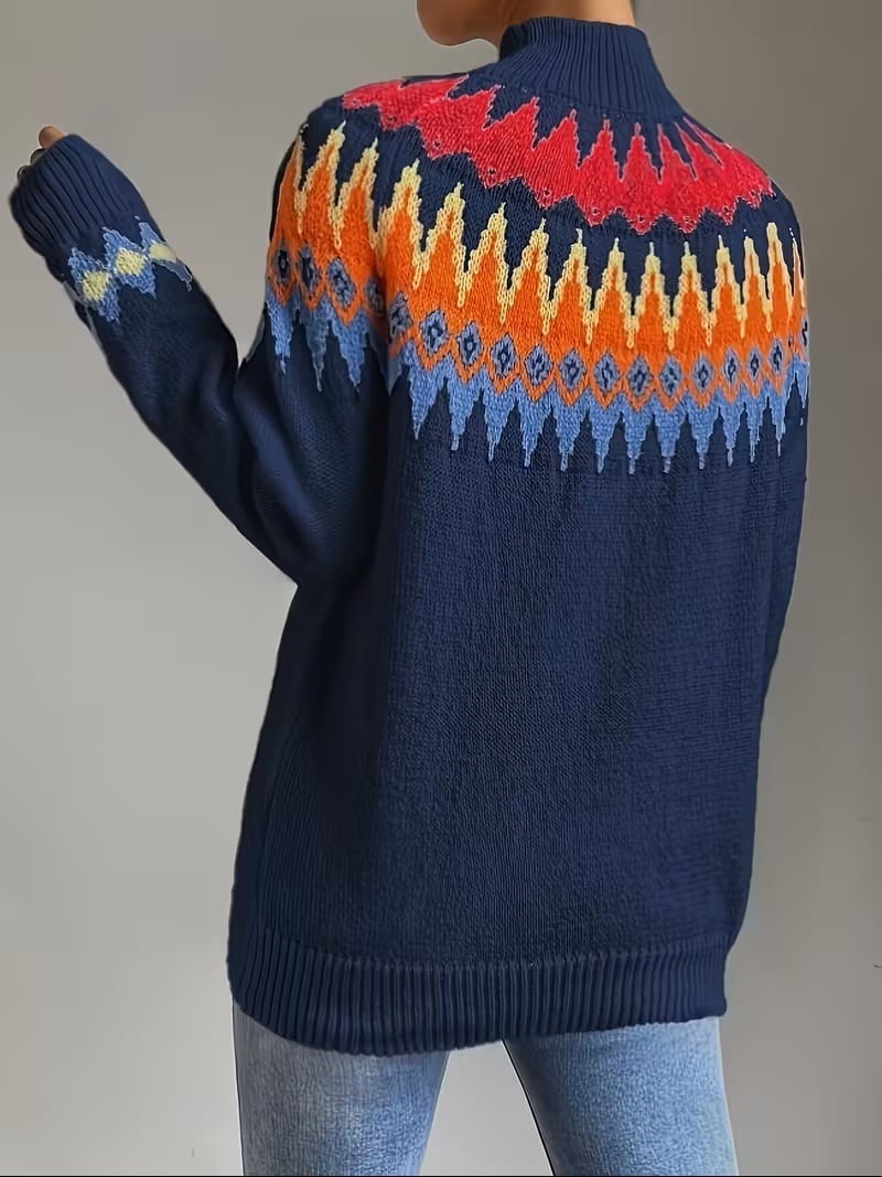 秋冬に快適に着こなせる、エレガントなカラーブロックセーターが新たに登場しました!幾何学模様が施されたデザインは、普段使いからフォーマルなシーンまで多目的に活躍します。ラウンドネックのプルオーバーとして、カジュアルなスタイルにも合わせやすく、居心地の良い素材感が特徴です。洗濯機でのお手入れも簡単で、ドライクリーニングも可能なので、日常使いにも最適です。