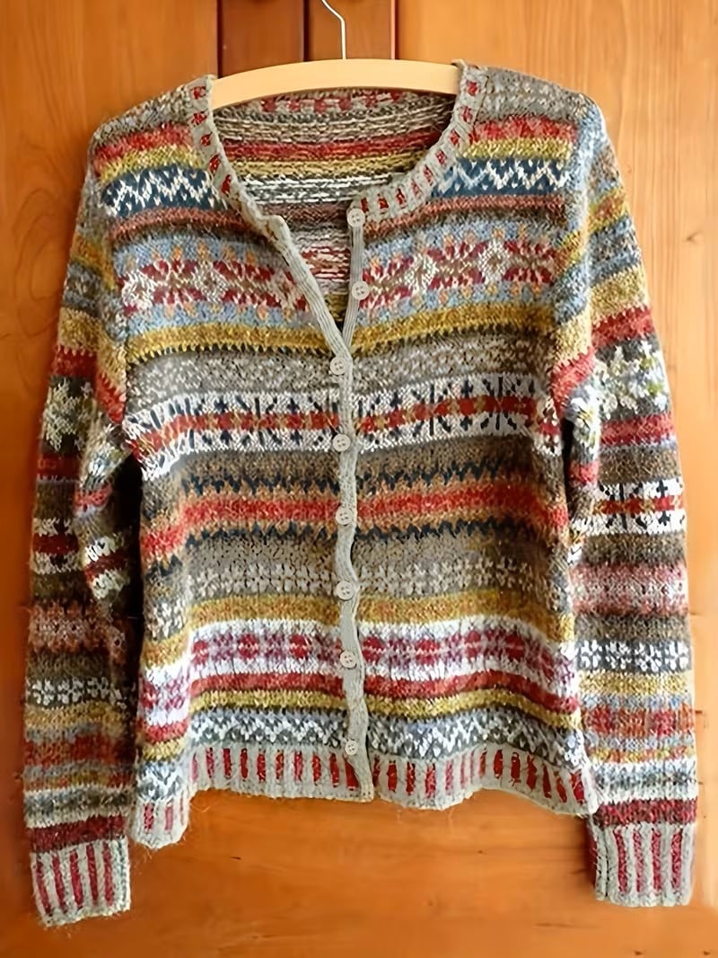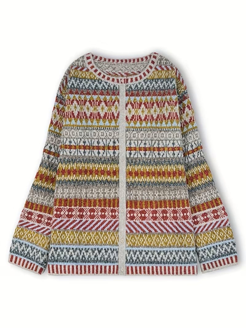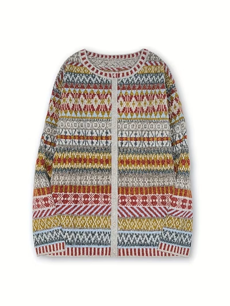 【送料無料】冬用レディースセーター エレガントコートジャケット マルチカラー ハンドジャカード コントラスト ソフトで美しい ファッショナブル 快適 カジュアル ヴィンテージ 通勤用 スリムカーディガン ZLLZ K03047 | monohouse