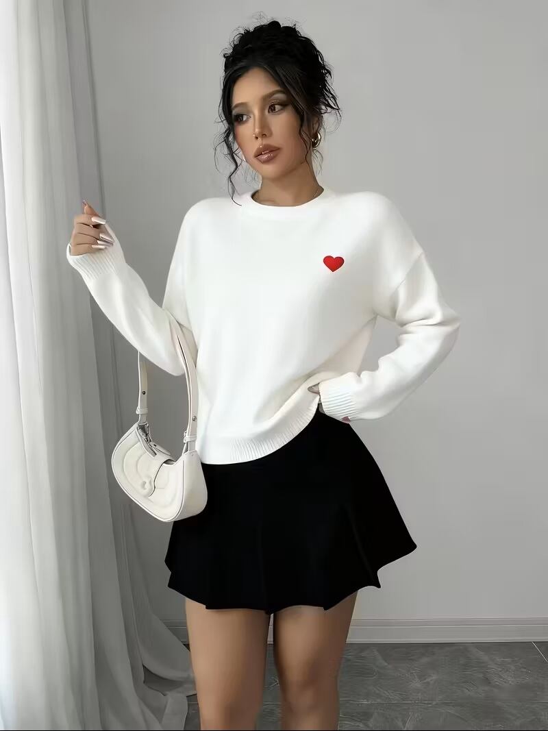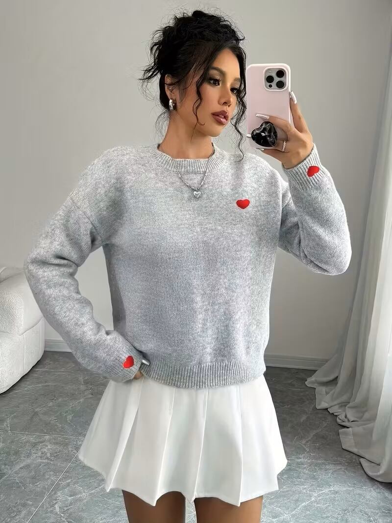 秋冬新作のレディースプルオーバーが登場!柔らかな肌触りと心地よい着心地を兼ね備えた、ラウンドネックのハート刺繍デザインが魅力のトップスです。シンプルなソリッドカラーは、さまざまなスタイルに合わせやすく、カジュアルからエレガントなシーンまで多彩に着こなせます。長袖仕様で、寒い季節でも暖かさを保ちながらおしゃれを楽しむことができます。デイリーファッションにぜひ加えて、あなたの秋冬コーディネートをアップデートしましょう!