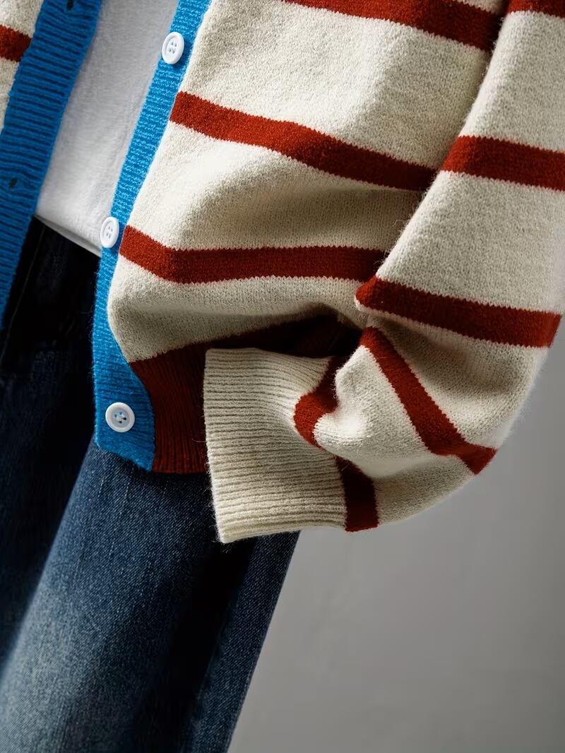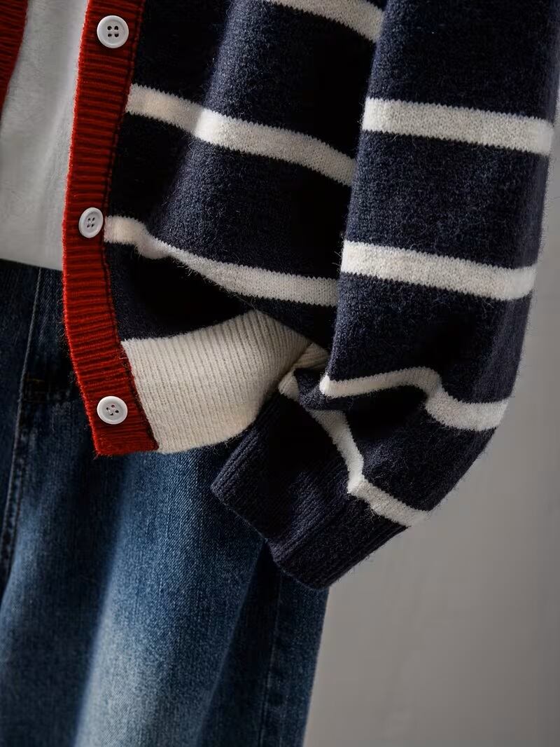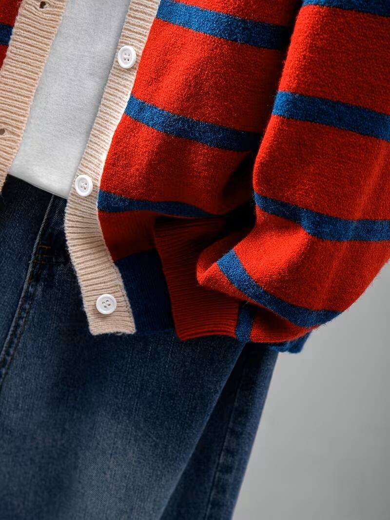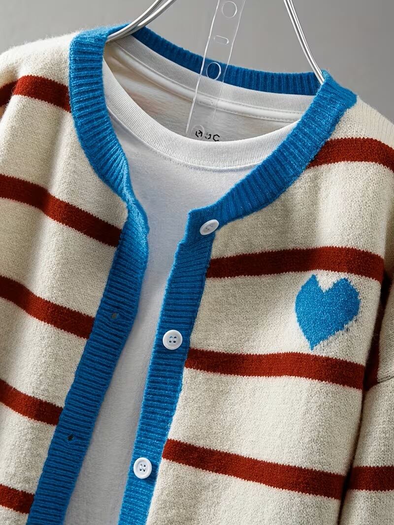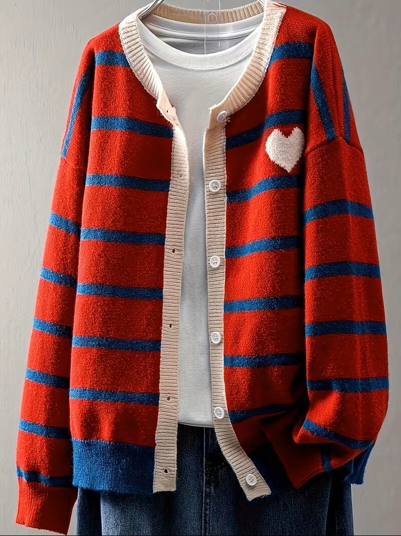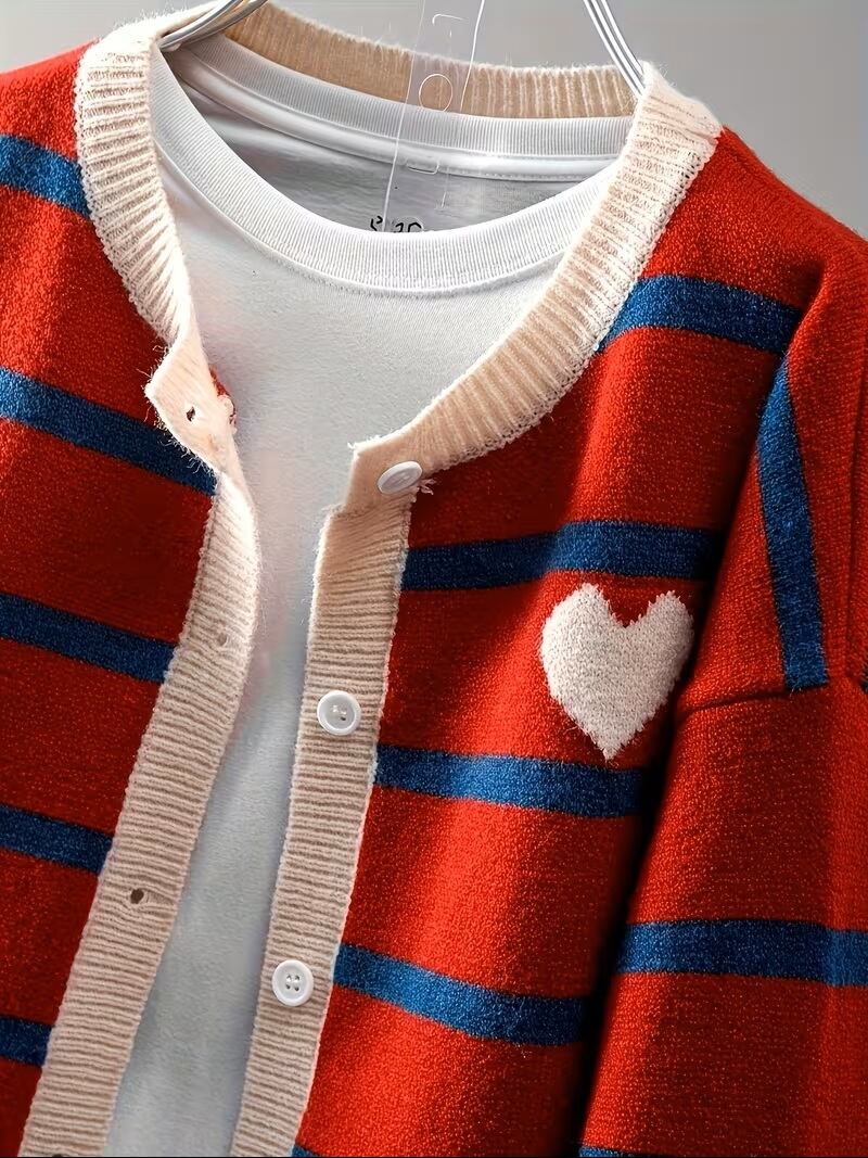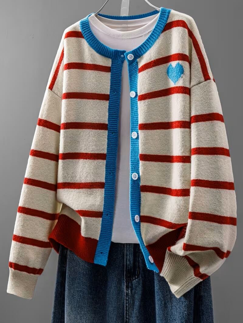 このシーズン、あなたのスタイルを一層引き立てるアイテム、可愛いハート柄のボタンアップストライプセーターが登場しました!バレンタインデーにもぴったりなこのセーターは、柔らかな肌触りと心地よい着心地を実現しており、ファッション性と実用性を兼ね備えています。ストライプデザインがシックさを引き立て、どんなコーディネートにも合わせやすく、デイリーから特別な日まで幅広く活躍します。