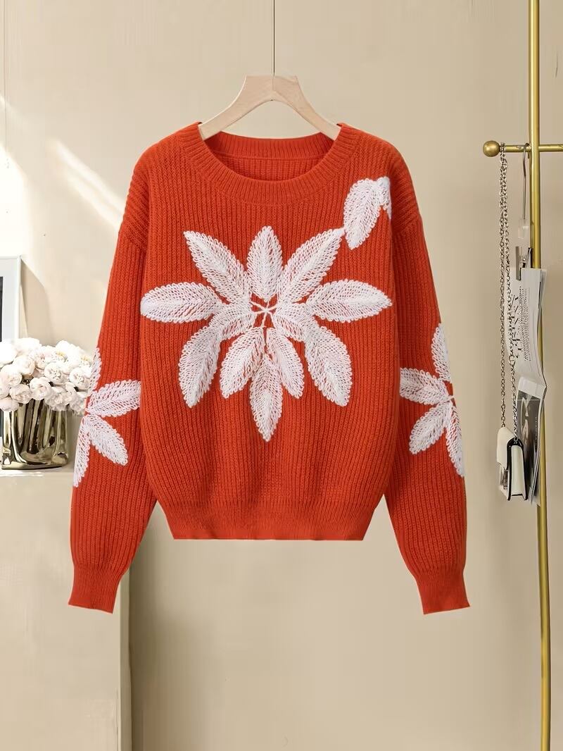 【送料無料】レディース カジュアル ラウンドネック 長袖ブラウス カラーブロック フラワー刺繍 - オールシーズン レイヤリングトップ, ラテンスペシャルラインコレクション, ミディアムストレッチ生地 (手洗い/ドライクリーニング) - エレガントな日常着&特別な日に K03057 | monohouse