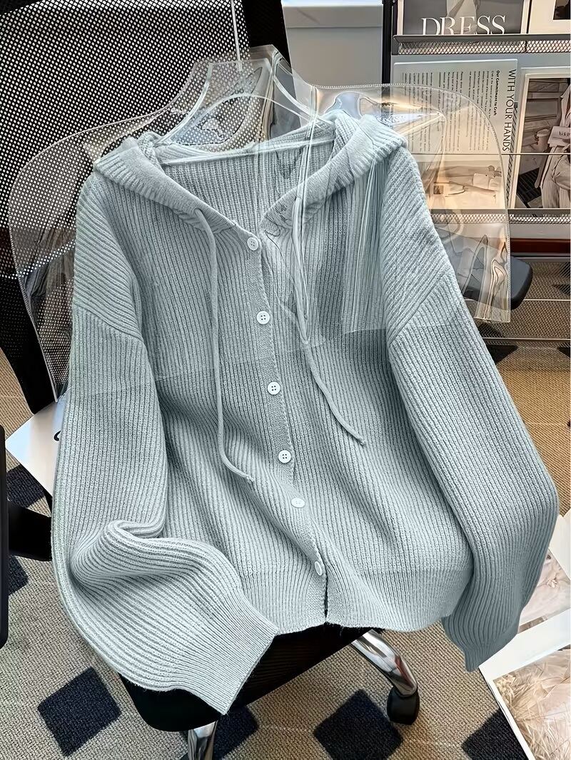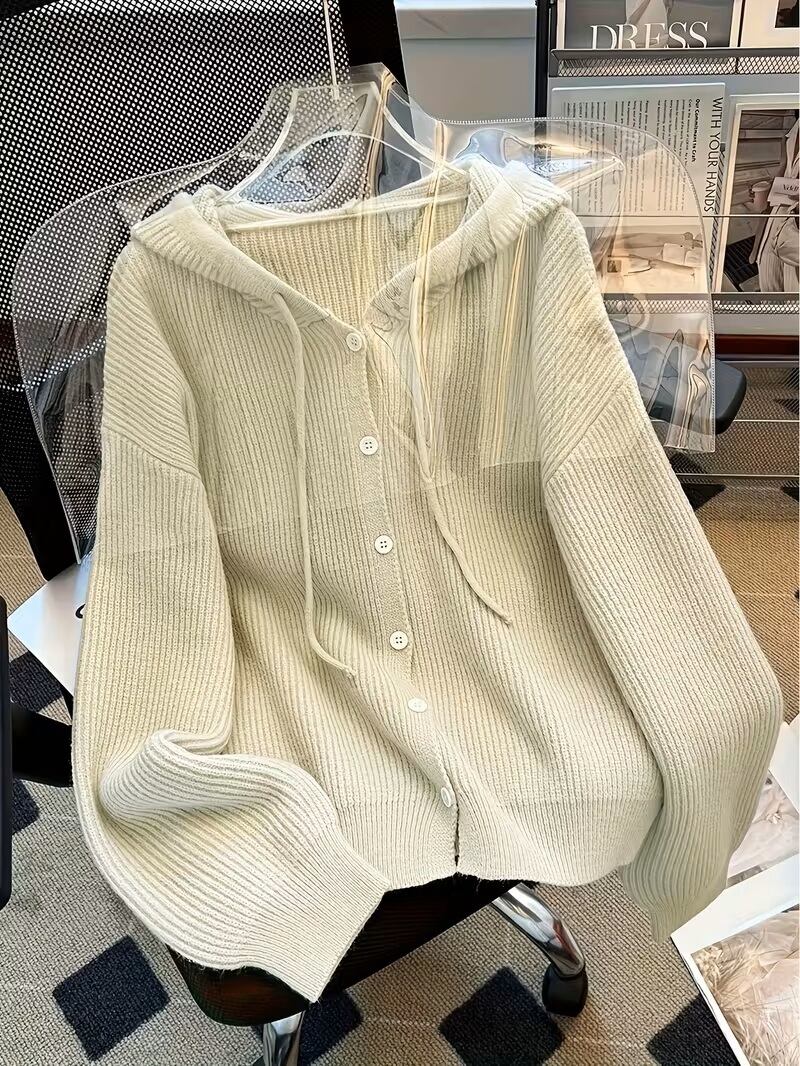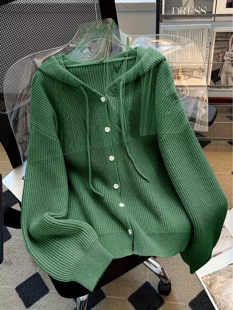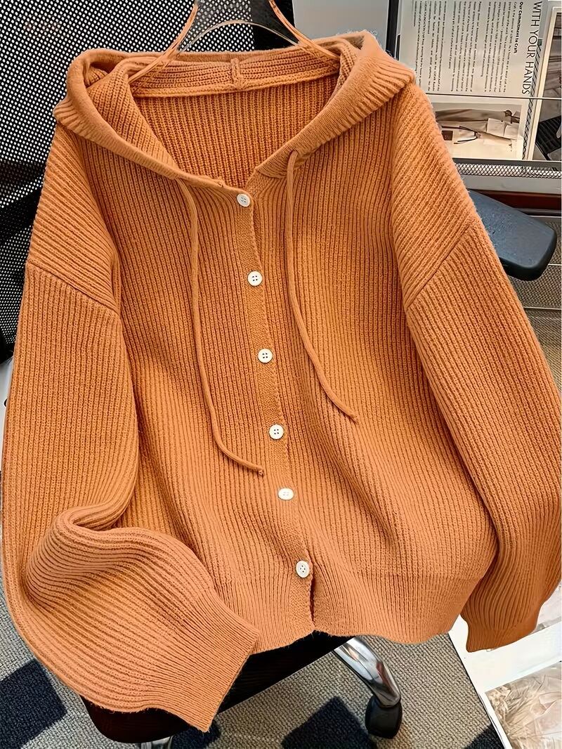 秋冬シーズンにぴったりな、エレガントなフード付きカーディガンセーターが登場しました!ソフトで快適な肌触りのこのセーターは、シンプルな無地デザインながらも、ボタンディテールがアクセントとなり、どんなコーディネートにも幅広く活躍します。フード付きのスタイルは、カジュアルさと女性らしさを兼ね備え、温かみのある着心地を提供します。この秋冬、おしゃれを楽しむためのマストアイテムをぜひお試しください!