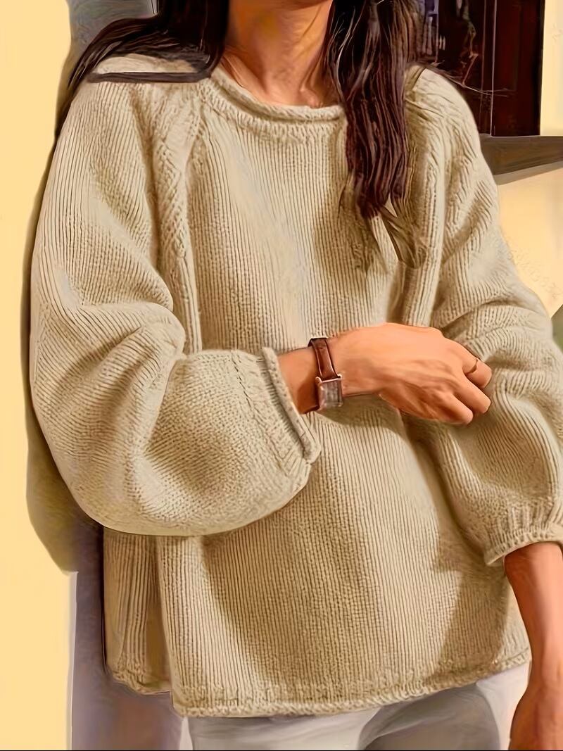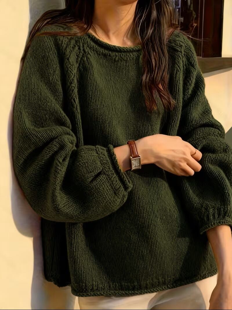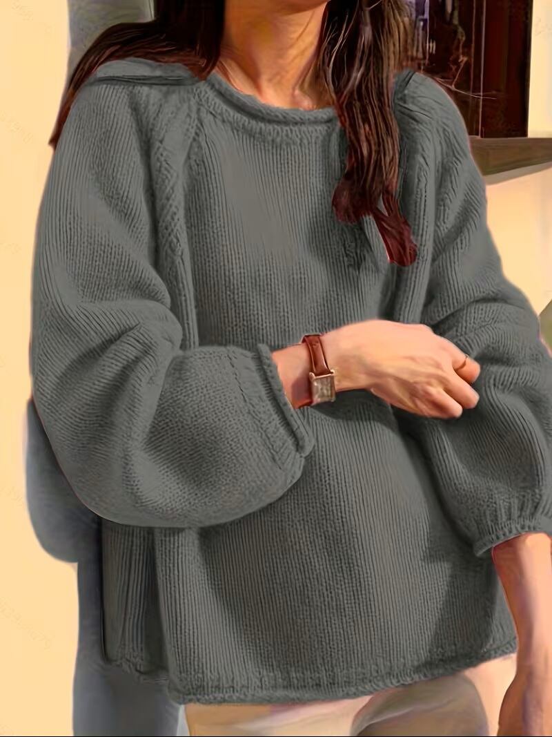 【送料無料】フレンチスタイル ラウンドネック プルオーバー セーター 無地 ランタンスリーブ ゆったりフィット カジュアルでリラックスしたスタイル おしゃれで着回し力抜群 肌の色を引き立てる K03069 | monohouse