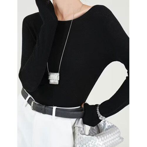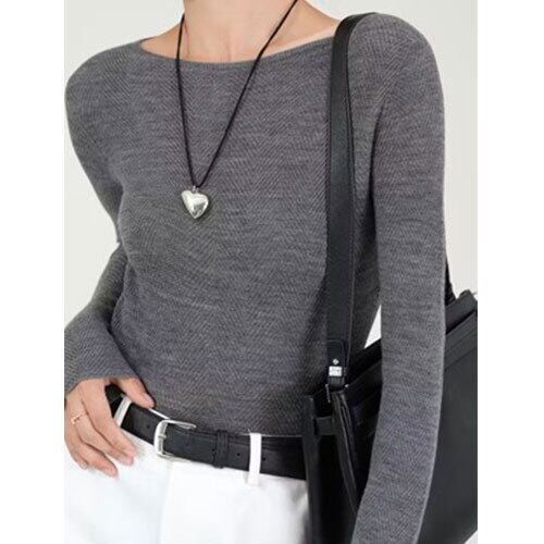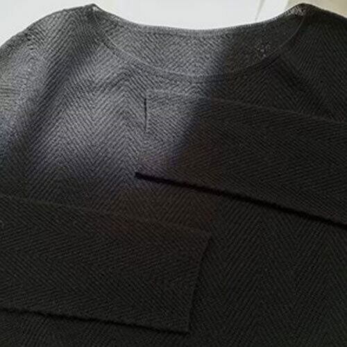 【送料無料】【方向性100%極細ウール】シームレスラウンドネックベースレイヤー | 魚骨模様、ミニマリストで快適、通勤・通学に最適、長袖、リブ編み K03131