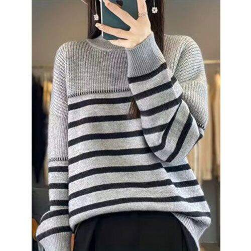 【送料無料】レディース エレガント ラウンドネック セーターベースレイヤー - ストライプ 冬用レイヤリングトップ リブトリム付き ゆったりフィット 秋/冬用 手洗い可能 コージーブラウス (非) K03136
