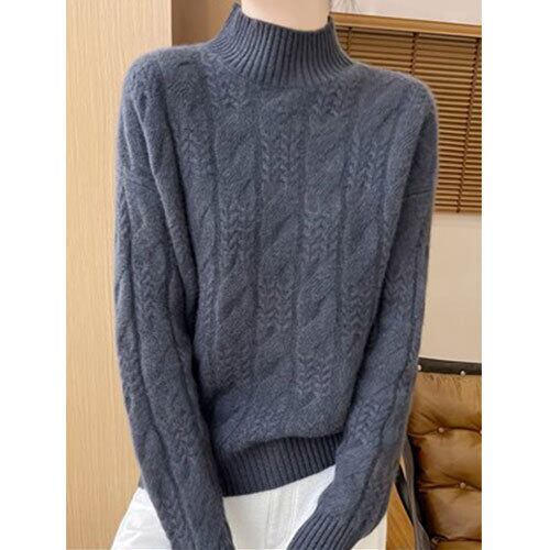 【送料無料】【新作】秋冬 ハーフハイカラー ケーブルトップス ウール プルオーバー 厚手 ゆったり ベースレイヤー プラスサイズ レディース K03138
