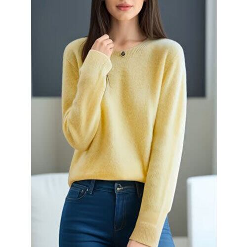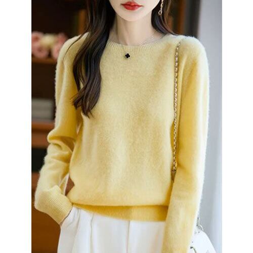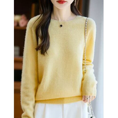 【送料無料】秋の新作 ラウンドネック スリムフィット ピュアウール シームレス プルオーバー セーター ダックイエロー 長袖 多用途ニットウェア K03148