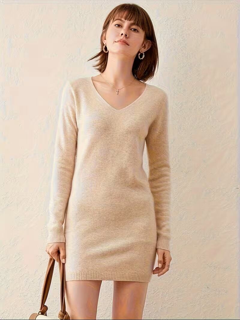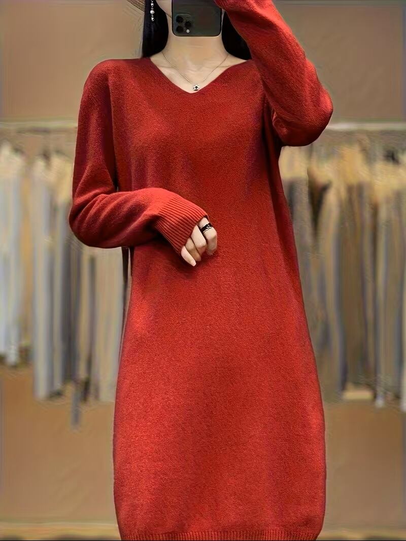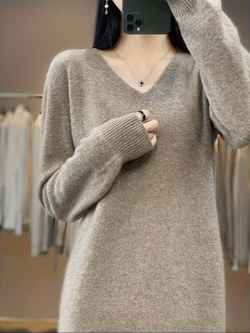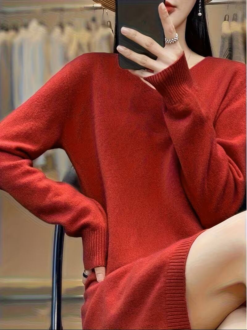 【送料無料】レディース ロングウールカーディガン 新作春/秋 Vネックセータードレス 無地 マルチドレス プルオーバー ヒップアップ ベースレイヤー ゆったりフィット K03146