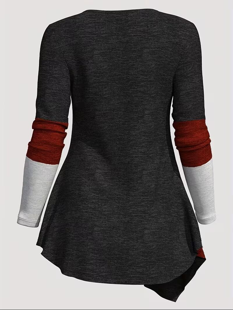 【送料無料】【レディース】襟付き長袖トップス、不規則な裾とカラーブロックのステッチが特徴 K03158