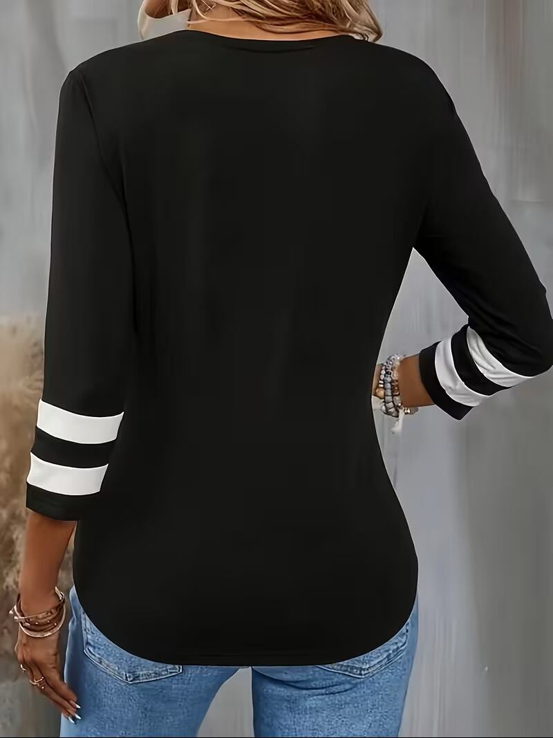 【送料無料】【レディース】白黒カラーブロック Vネック カジュアル Tシャツ K03171