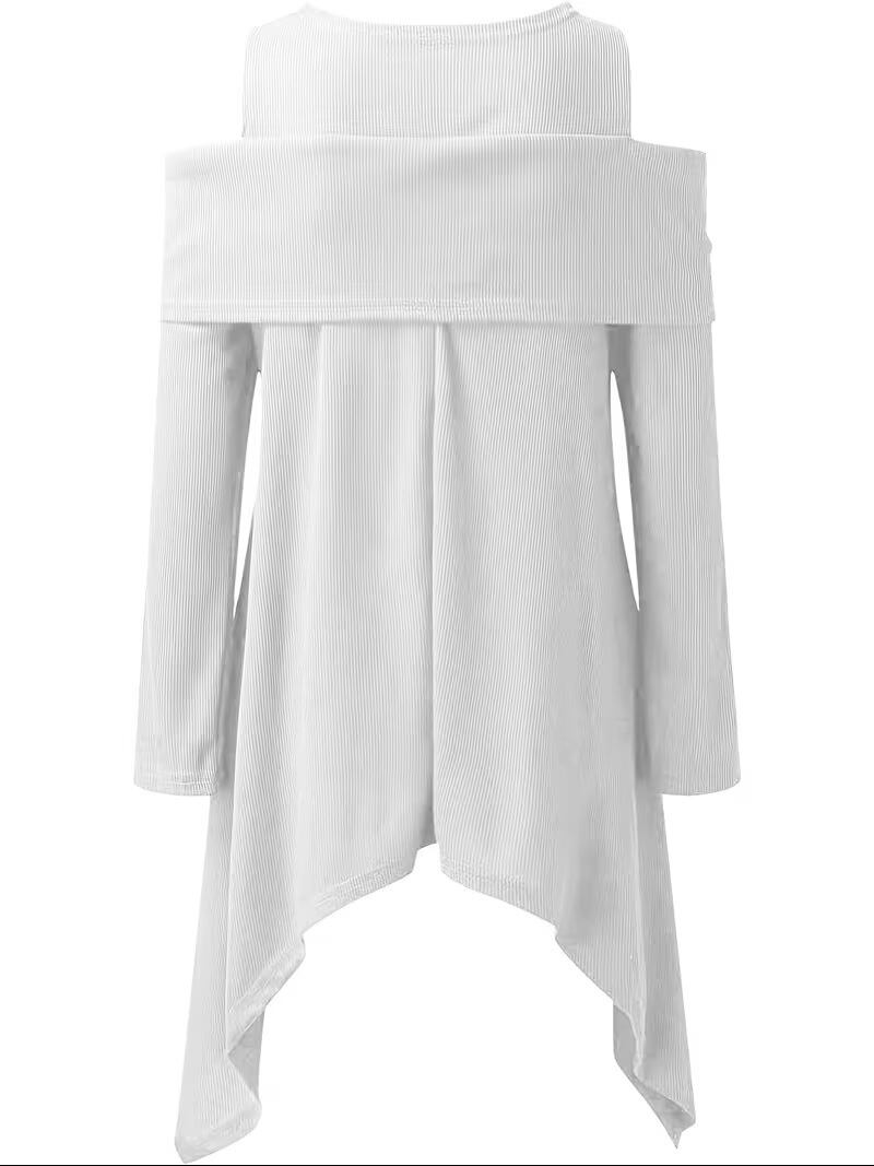 【送料無料】レディース オフショルダー 無地 糸通し生地 長袖 ルーズ プルオーバー K03207