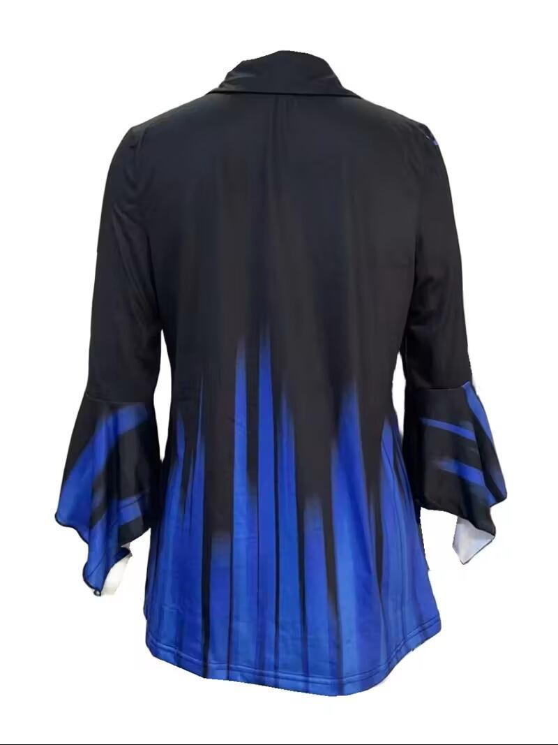 【送料無料】花柄襟付きTシャツ、春秋用カジュアル七分袖トップス、婦人服 K03222