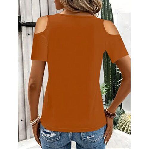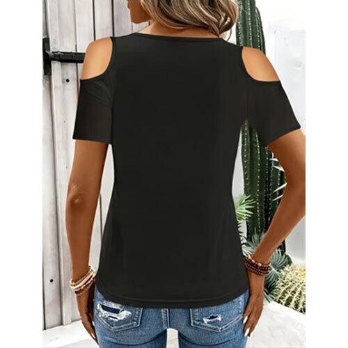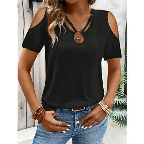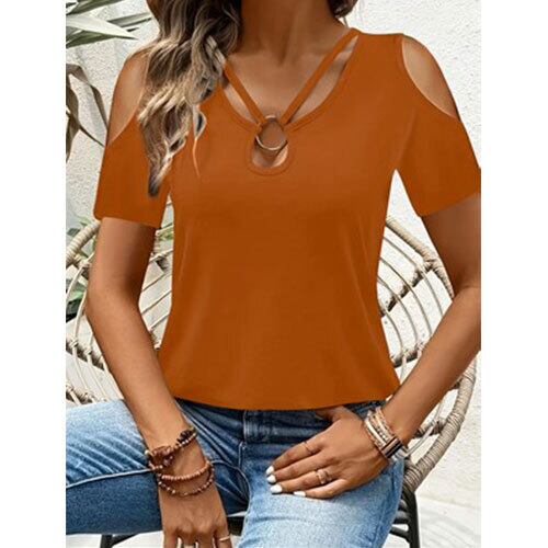 【送料無料】おしゃれでエレガントな春/夏新作、無地、ラウンドネック、オフショルダー半袖レディーストップTシャツ K03333