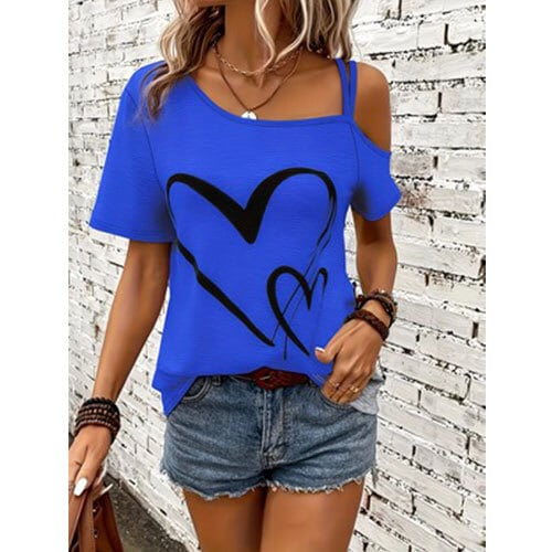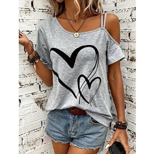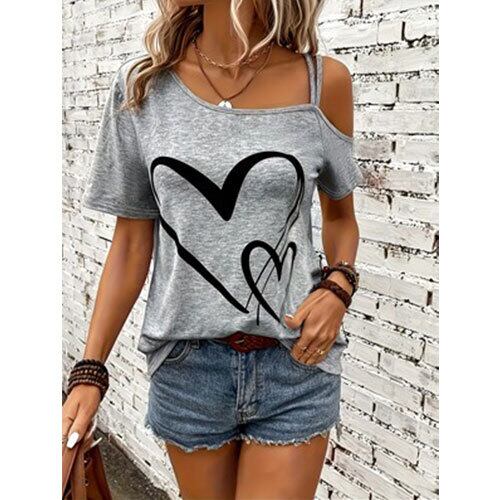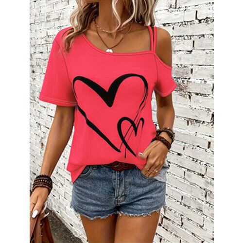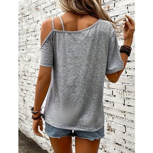 【送料無料】おしゃれなカジュアルオフショルダーの半袖Tシャツ K03347