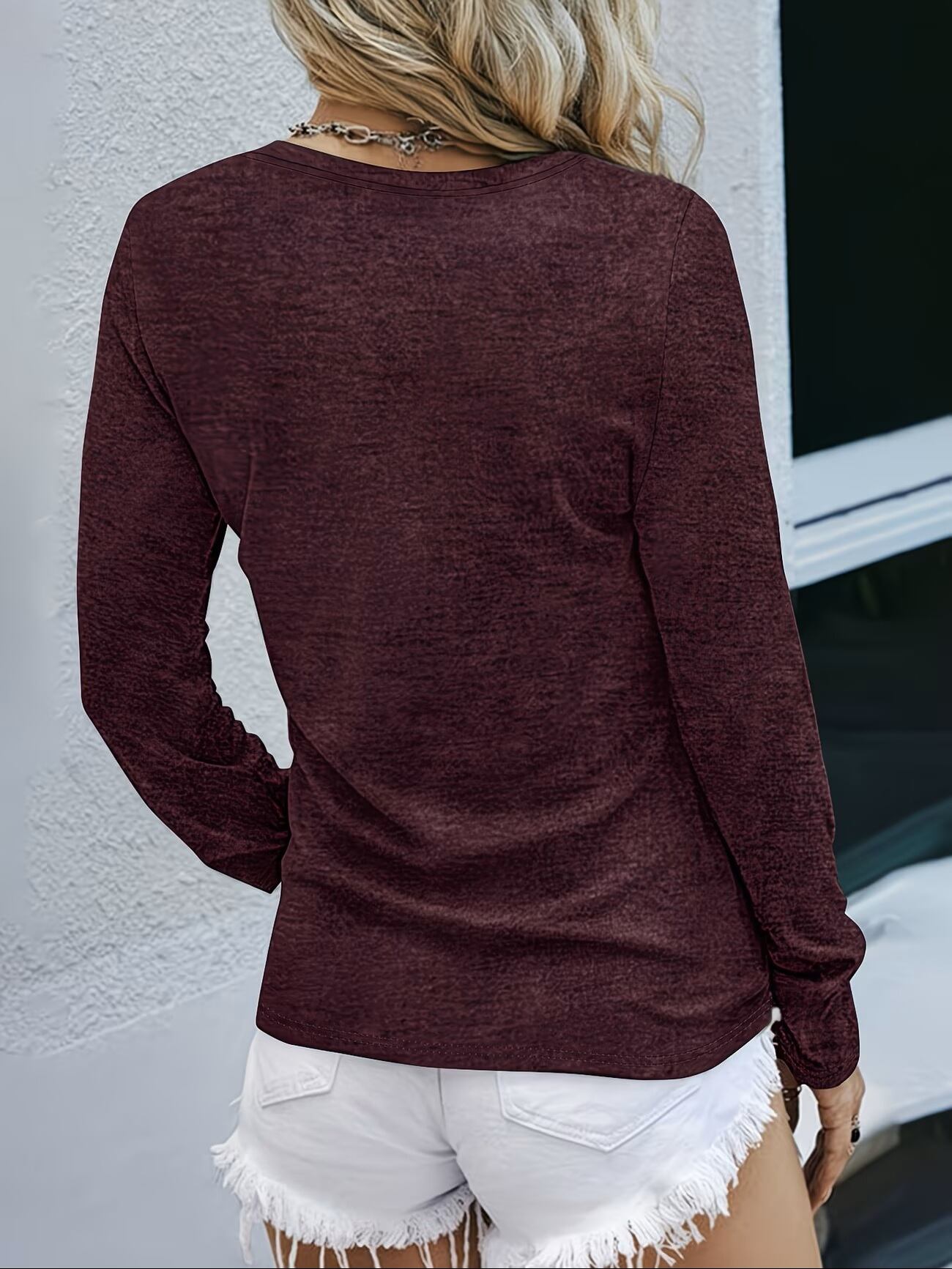 おしゃれなフリルデザインが魅力の、カジュアル長袖Tシャツです。ラウンドネックのデザインが首元を美しく見せ、どんなスタイルにも合わせやすさ抜群。軽やかで柔らかな生地を使用しており、秋の気温にもぴったり。デイリーコーデから少しおしゃれに決めたい日まで幅広く活躍します。