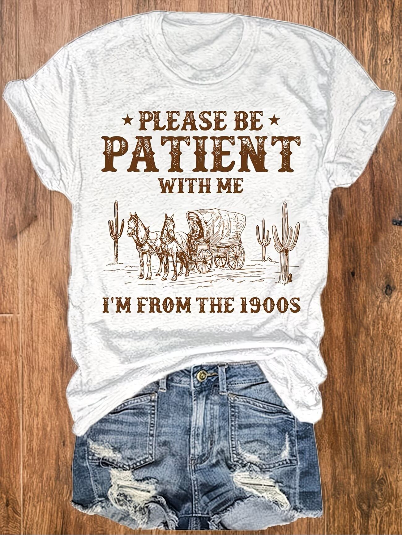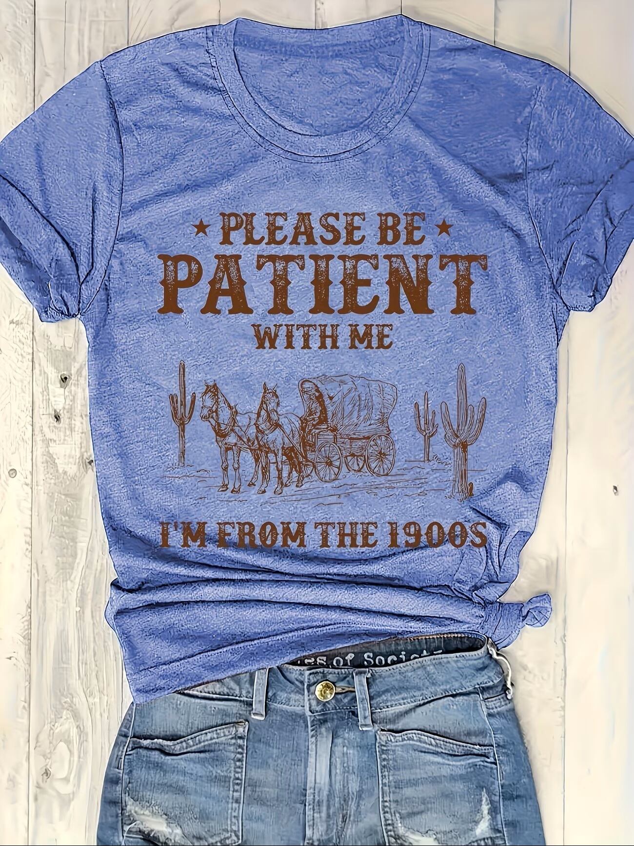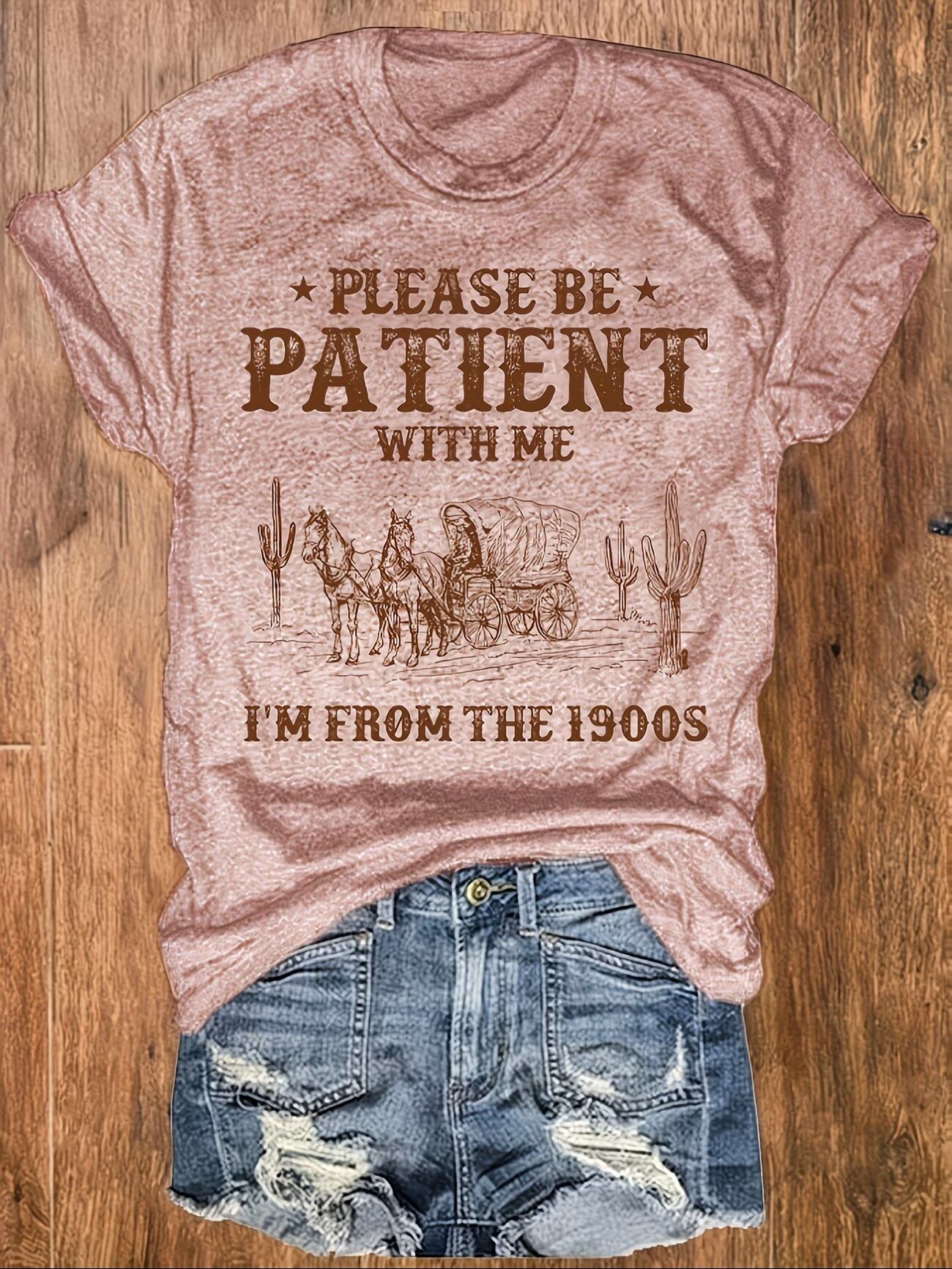【送料無料】ウェスタンスタイル レタープリント ラウンドネック Tシャツ、カジュアル バケーション レディース 半袖 トップス、レディース 服 K03355