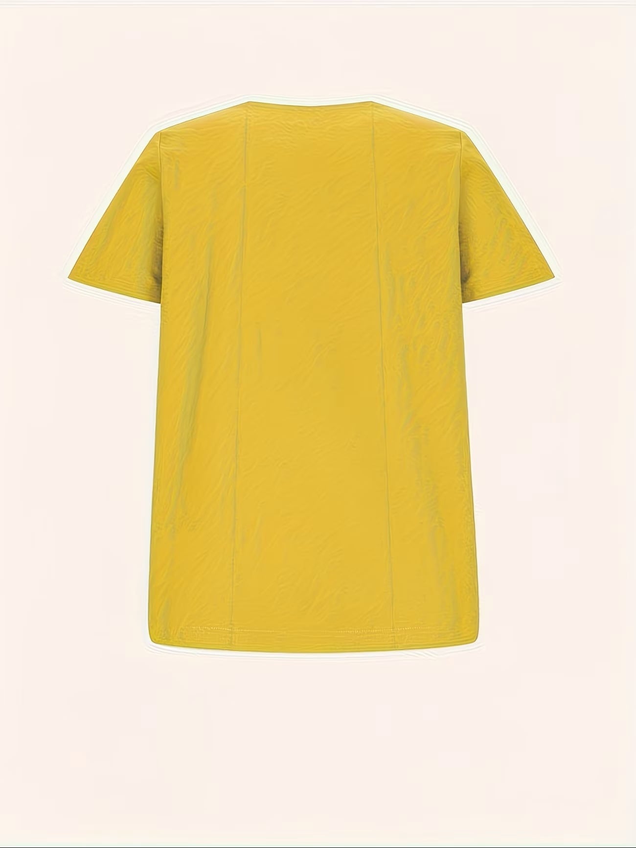 【送料無料】タンポポプリントボタン装飾Tシャツ、カジュアルクルーネック半袖Tシャツ春夏用、婦人服 K03356