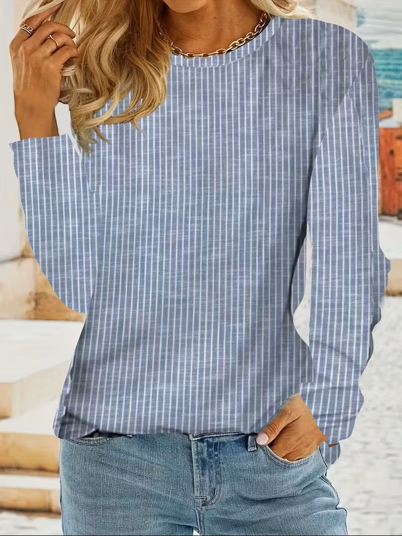 【送料無料】春秋 新スタイル ランダムプリント クルーネック 長袖 ルーズフィット ベースレイヤーTシャツ 洗濯機洗い可 - 春秋の普段着・家庭用に最適 K03372