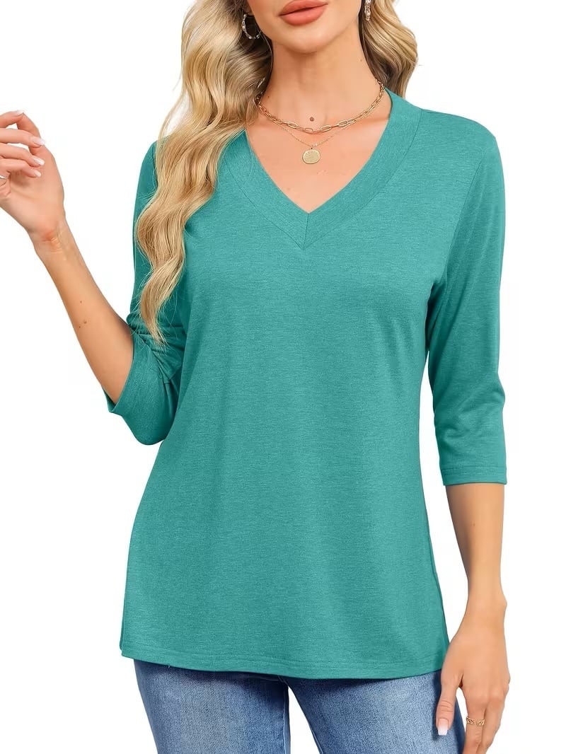 【送料無料】【レディース】7分袖トップス おしゃれ カジュアルシャツ 快適 通気性 Vネック 7分袖 Tシャツ K03375
