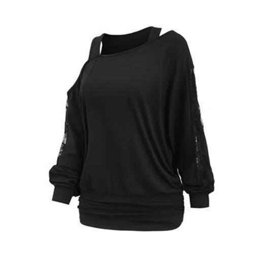 繊細なレースと柔らかな生地を組み合わせた、女性らしい長袖トップスです。胸元や袖に施されたレーススプライシングが上品なアクセントとなり、シンプルながら華やかさを演出します。軽くて通気性の良い素材を使用しており、春・秋は一枚で、冬はインナーとしても着用しやすい万能アイテム。