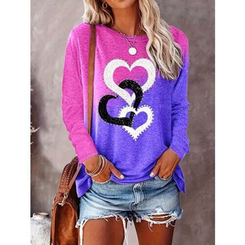 【送料無料】ランダムプリント ラウンドネック 長袖 ゆったりフィット Tシャツ - 洗濯機対応、日常&ホームユースに最適 K03396