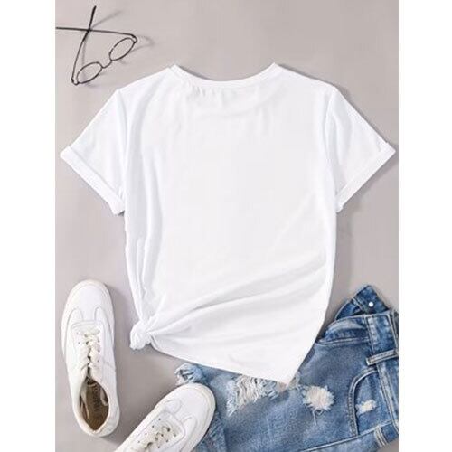 【送料無料】レタープリントクルーネックTシャツ、カジュアル半袖Tシャツ、春夏用、レディース服、バレンタインデー K03400