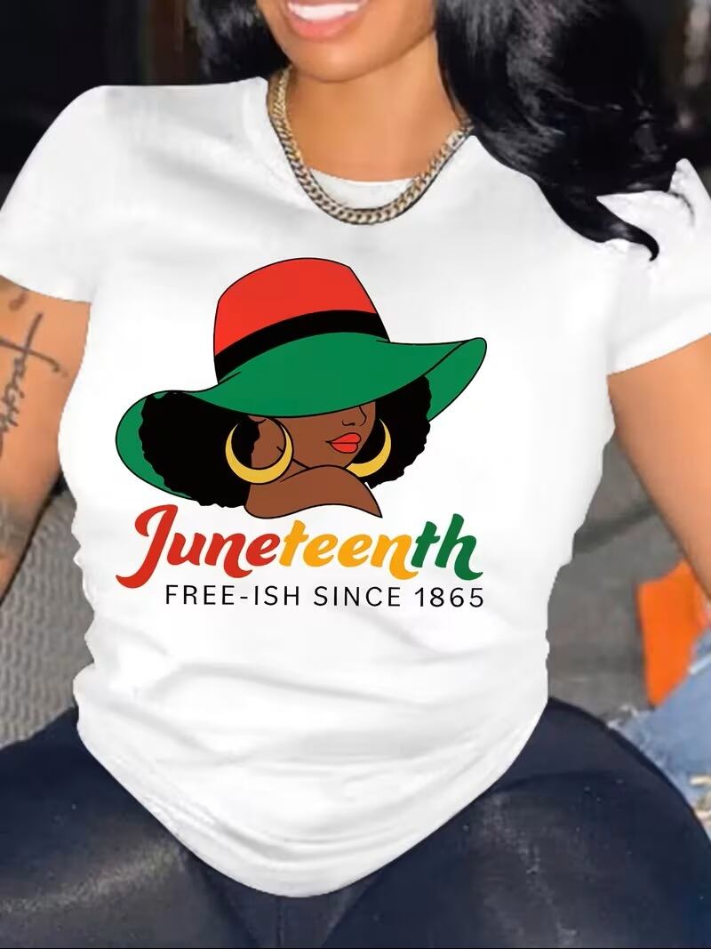 【送料無料】フィギュア&レタープリント クルーネックTシャツ 春夏カジュアル半袖Tシャツ 婦人服 K03405