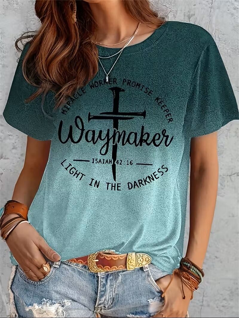 【送料無料】レディース クロスレタープリント ラウンドネック カジュアル 半袖Tシャツ K03410