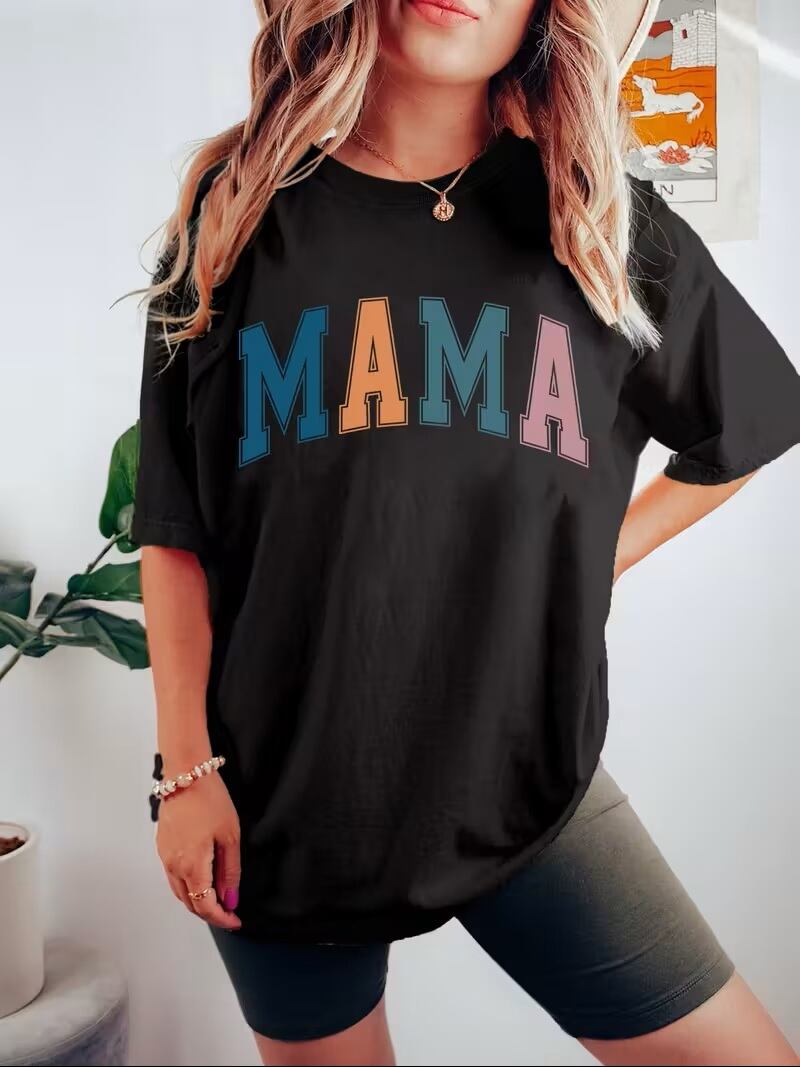 カジュアルでユニークな「ママレタープリント」が特徴の半袖ラウンドネックTシャツです。軽やかなデザインが日常のスタイルにポップなアクセントを加え、柔らかく通気性のある素材を使用しているため、快適な着心地を実現しています。リラックスしたフィット感で、普段使いからお出かけシーンまで幅広く楽しめる一枚です。