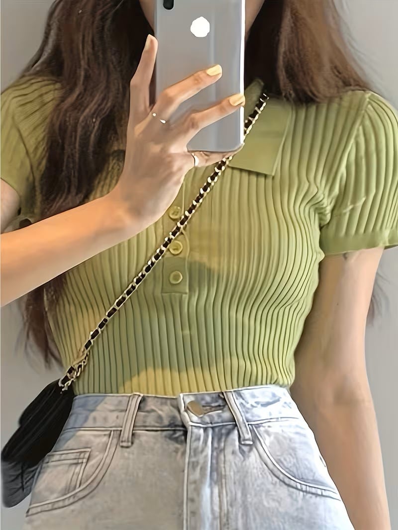 【送料無料】半袖 高ストレッチ ポロシャツ Tシャツ | 無地 カジュアルスタイル ボタンディテール レディース 夏 トップス K03452