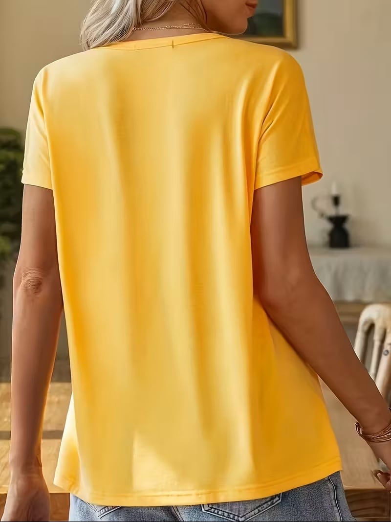 【送料無料】レディースカジュアルルーズフィット半袖Tシャツ - うるおいなハチ&花柄グラフィック、クルーネック、軽量な夏用トップ、カジュアルなアウトフィット用、レディースTシャツ K03480