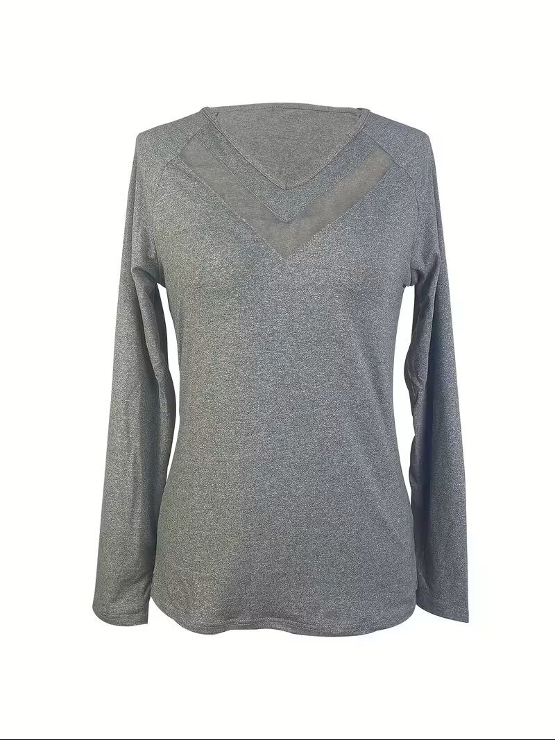 【送料無料】方向性メッシュネックライン Vネック 長袖 レディース K03527