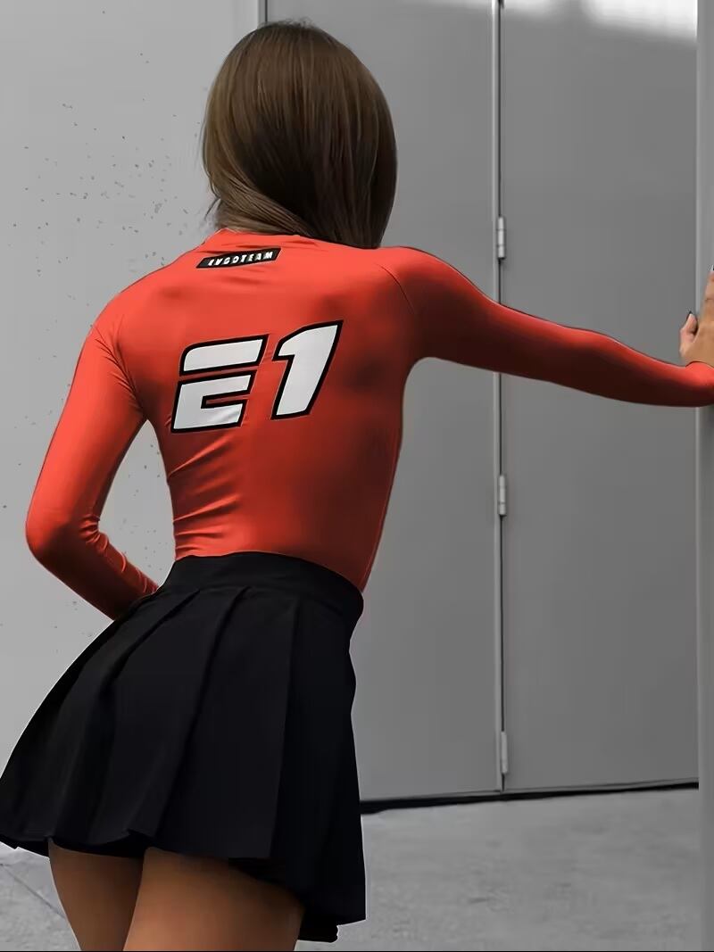 【送料無料】【2024年】アメリカンストリートスタイル バイクテーマ レタープリント トップス レディース ラウンドネック フィット ニューオートムンウィンターコレクション K03528