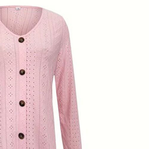 【送料無料】ヨーロピアン&アメリカンスタイル Vネック ボタン装飾 中空 長袖 Tシャツ レディース K03535